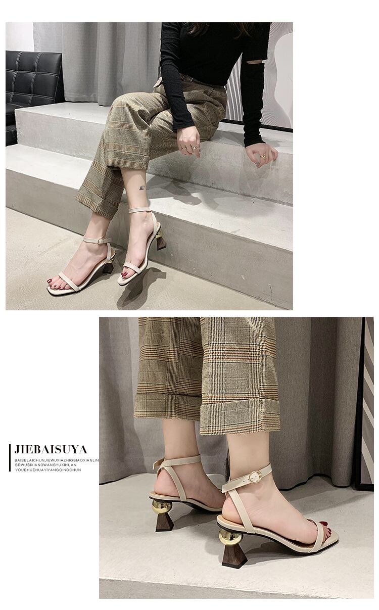 サンダル女性2020夏の新しいinsバージョンのファッションネット赤いオープントゥ妖精風ワインGLとハイヒール女性の潮 部族の婦人靴0978352