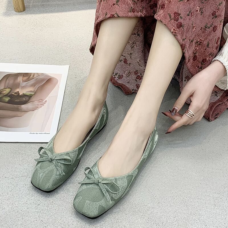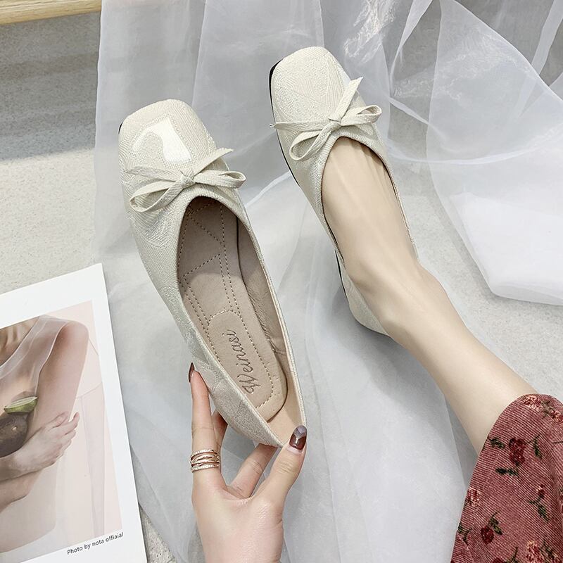 シングルシューズレディース2020春新しいinsバージョンワイルドボウタイスクエアヘッド学生フラット浅い口おばあちゃんシューズレディース 部族の婦人靴6648588