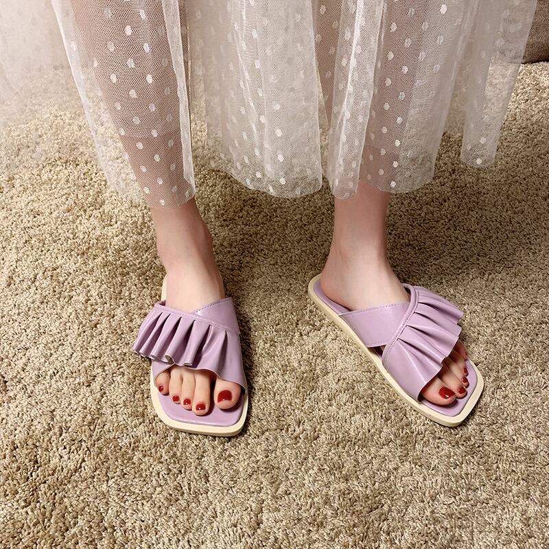 スリッパ女性は女性の夏のファッションの野生のネット赤インフラットボトムオープンつま先の蓮の葉のサンダルとスリッパの潮を着ます 部族の婦人靴1545417