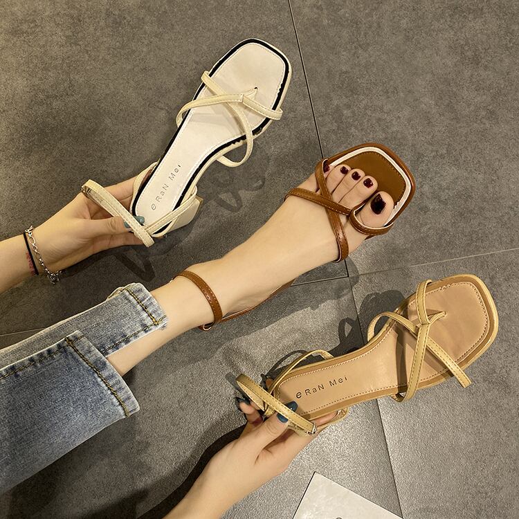 ローマのサンダル女性の妖精スタイル2020新しいバージョンの野生の夏のつま先の正方形の頭の厚いハイヒールファッションハイヒールの潮 部族の婦人靴4961138