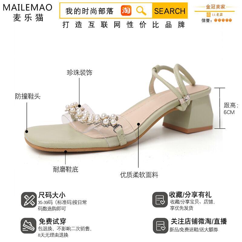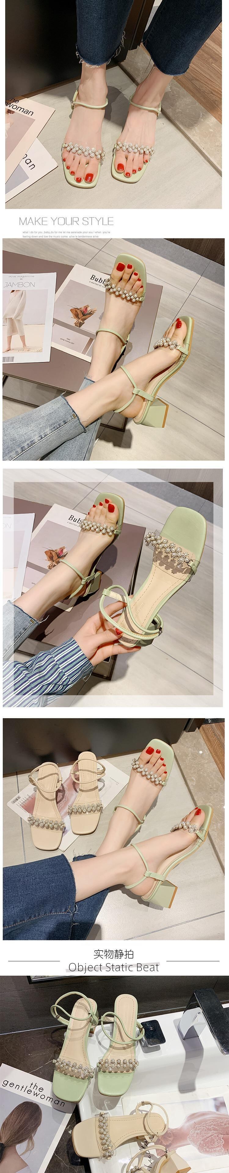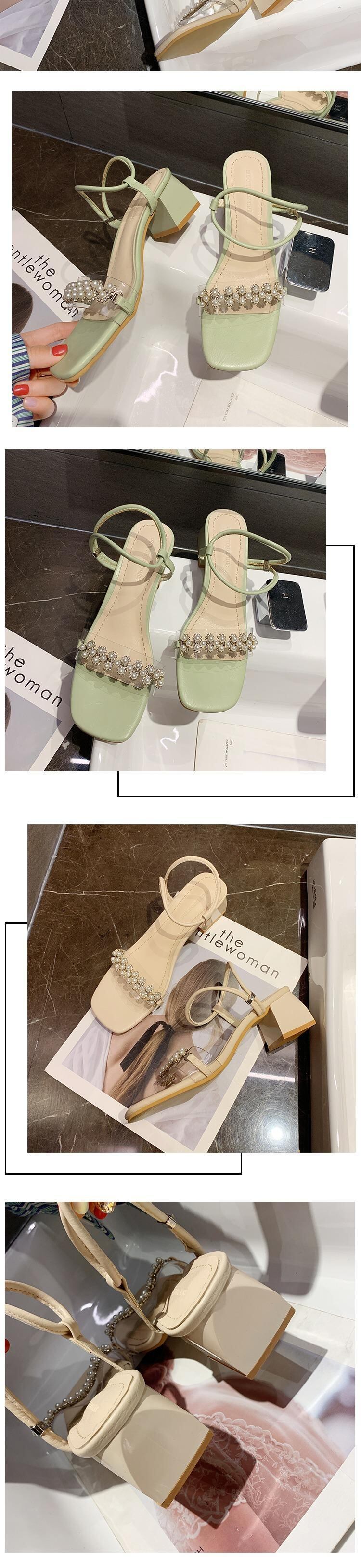 女性のサンダル2020春新しいファッションパール妖精風ネット赤いラインストーン厚いヒールサンダル 部族の婦人靴8675905