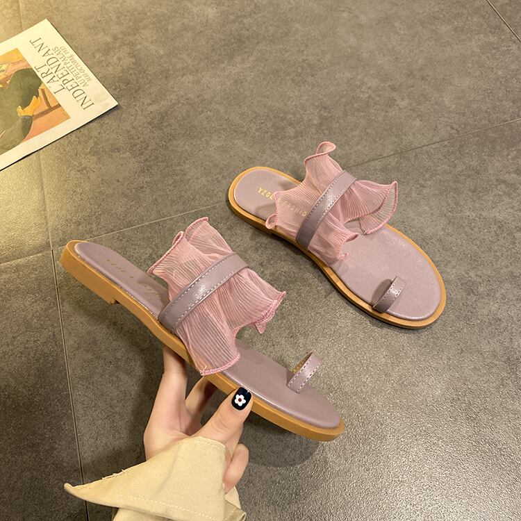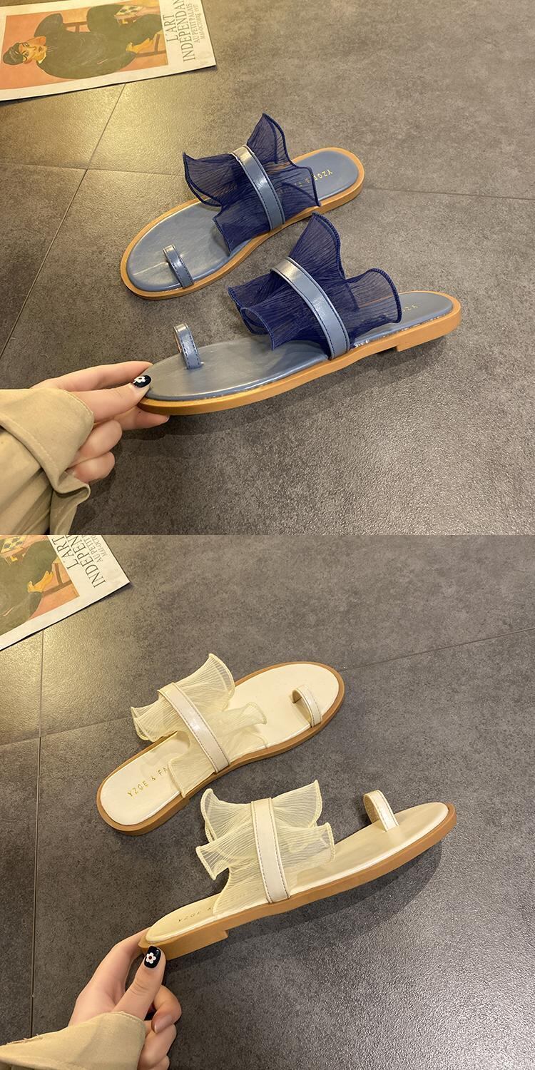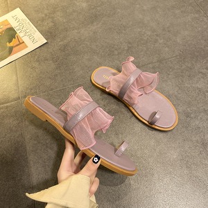 サンダルとスリッパ女性2020夏の新しいins潮学生野生セットつま先ネット赤フラットボトムスリッパ女性 部族の婦人靴4151474
