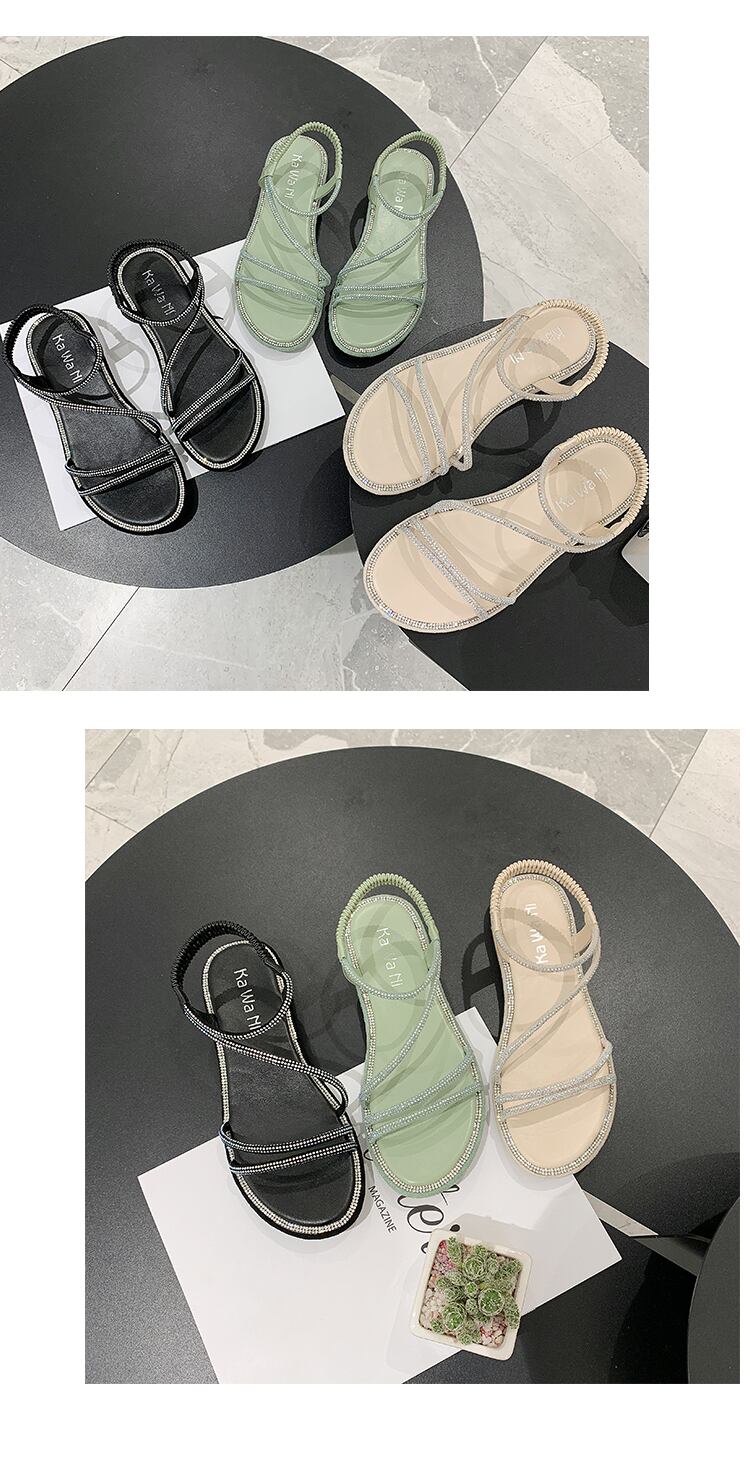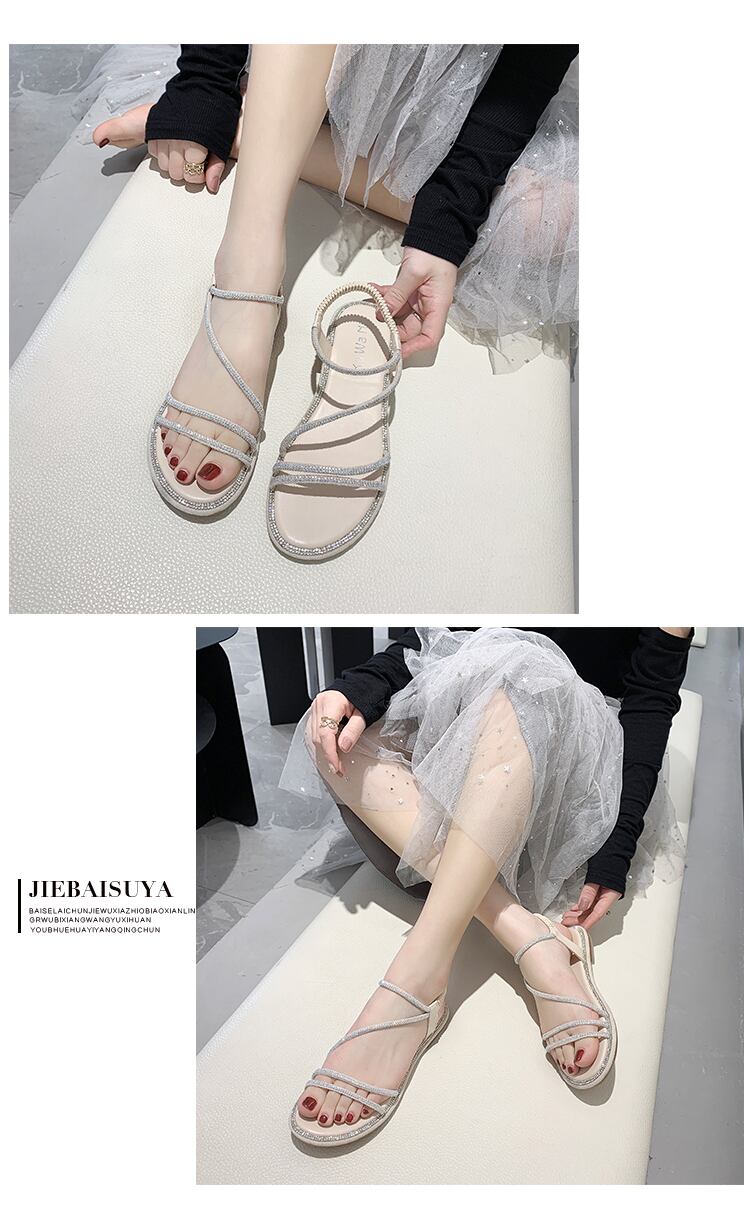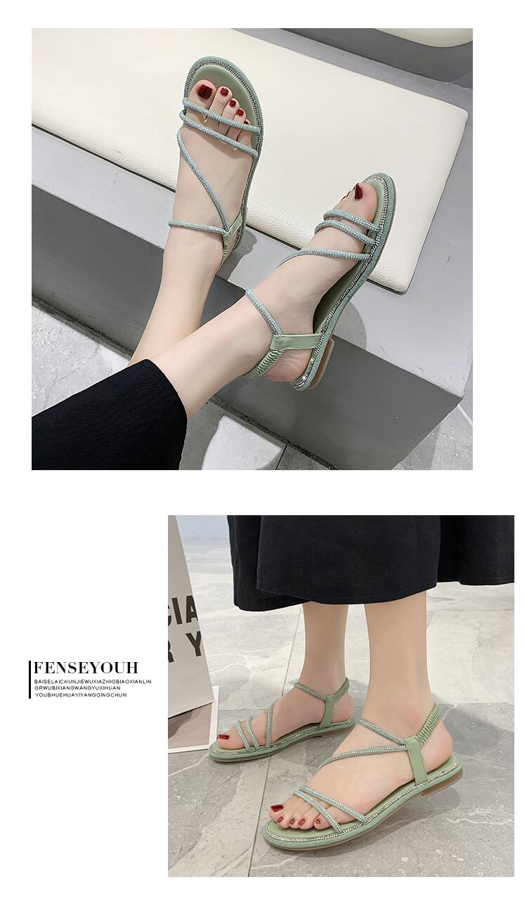 サンダル女性の妖精風2020春の新しいファッション野生のネット赤いラインストーンオープンつま先フラットローマの靴の女性 部族の婦人靴6360246