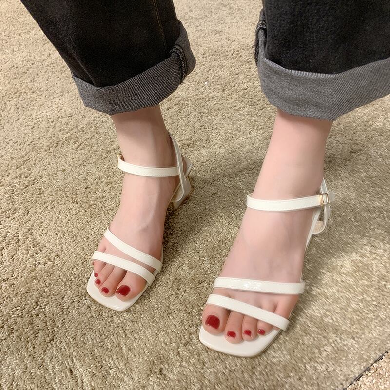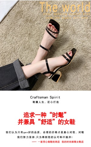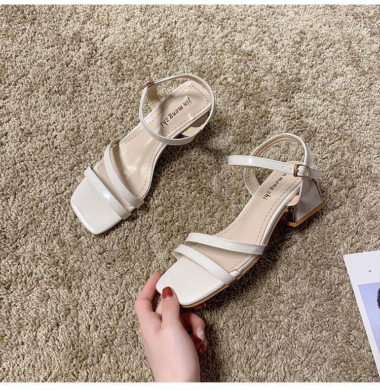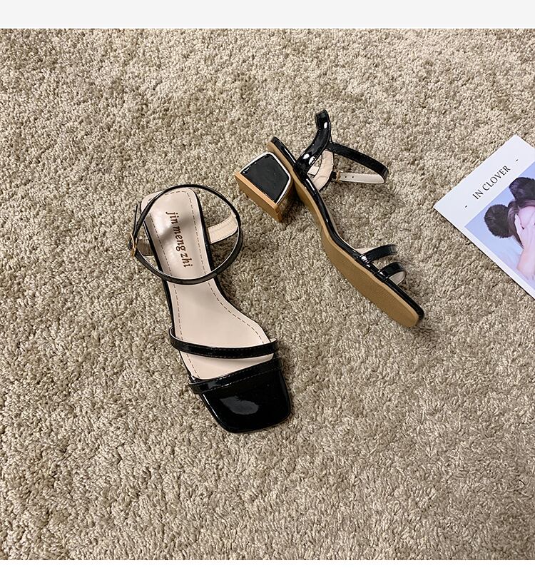 厚いヒールのサンダル2020新しい女性の靴夏のファッションの正方形の頭の妖精の学生の野生の単語のバックルのローマの靴 部族の婦人靴9933362