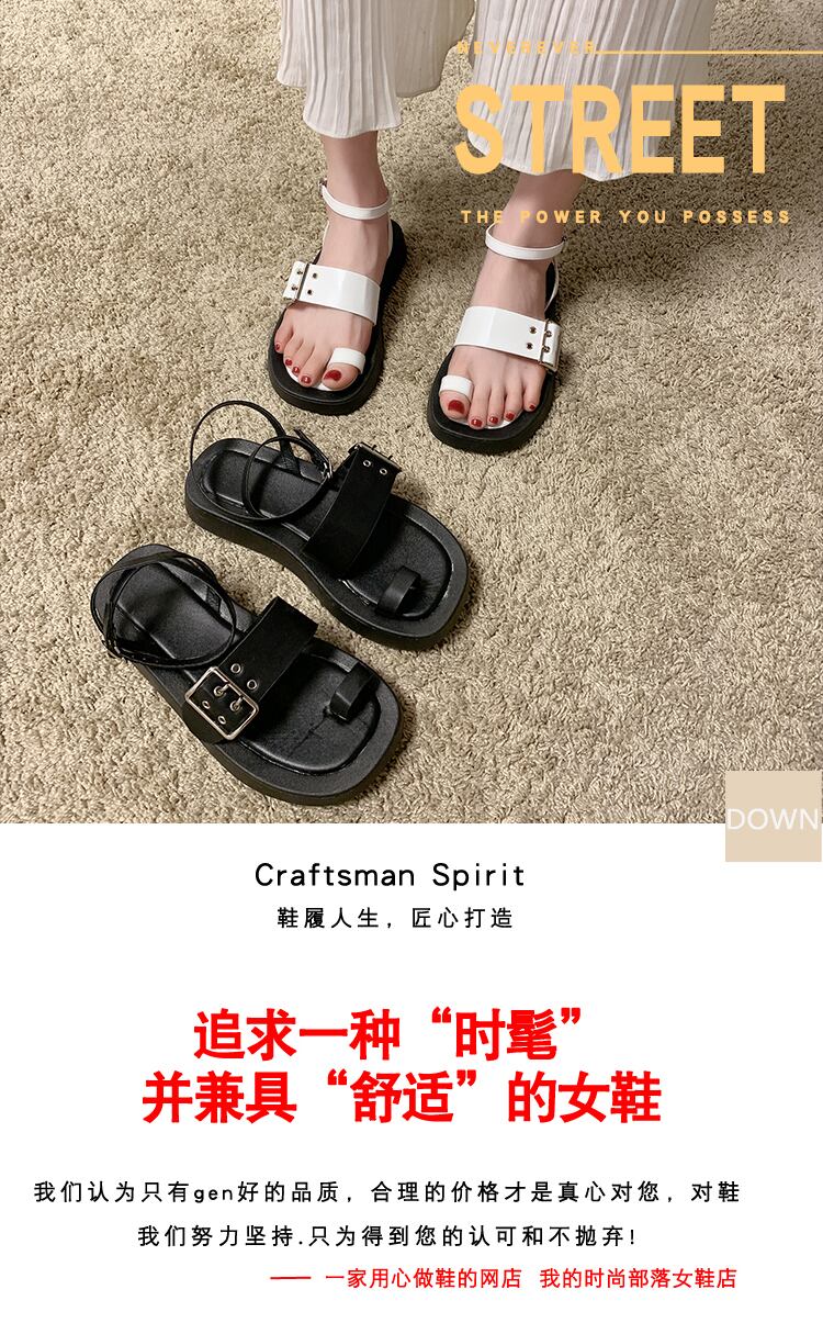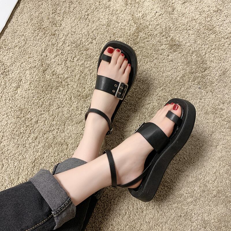 ローマのサンダル女性2020新しい夏カジュアルワイルドネット赤学生クリップつま先厚い底単語バックル穴レディースシューズ 部族の婦人靴8027995