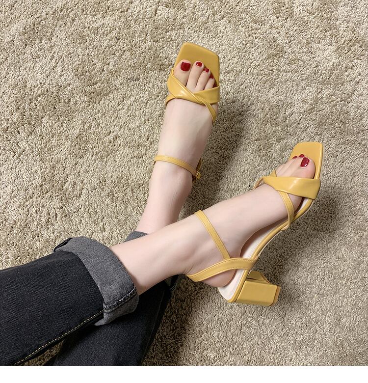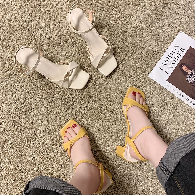 レディースファッションサンダル2020 ins tideチャンキーヒールハイヒールフレンチワードバックルローマンシューズの新しい多目的バージョン 部族の婦人靴0929145