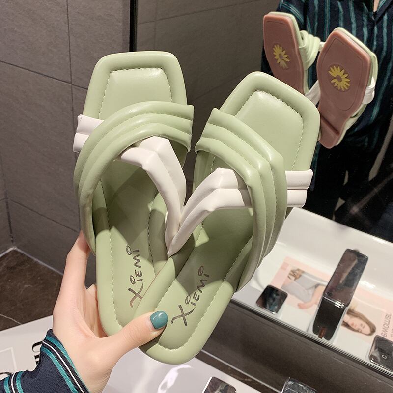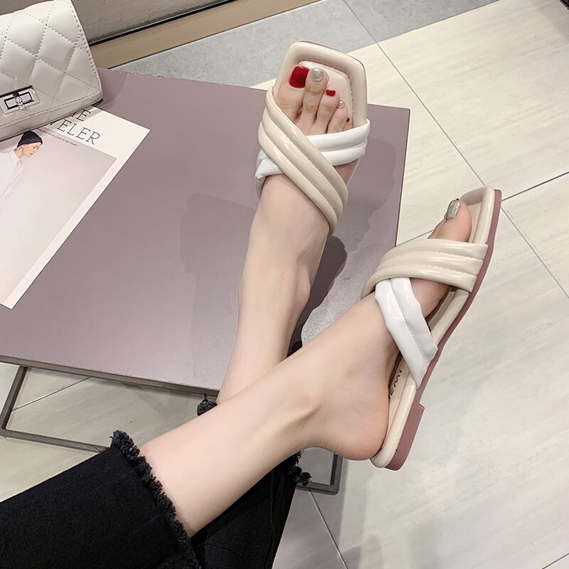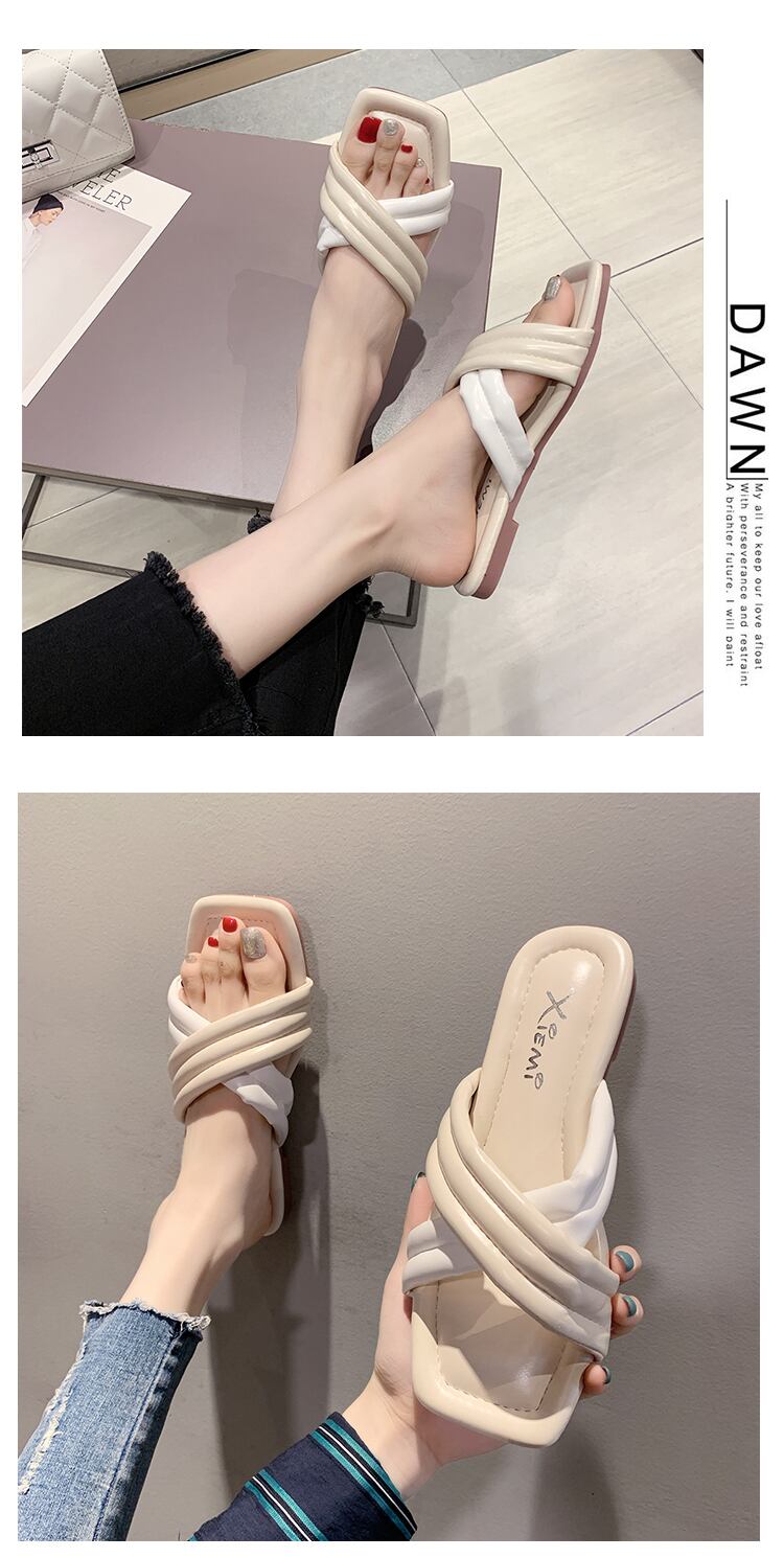 ネットの赤いスリッパの女性は、2020年の夏の新しいバージョンの野生のクロスベルト妖精の風の潮フラットサンダルとスリッパを着用します 部族の婦人靴7241261