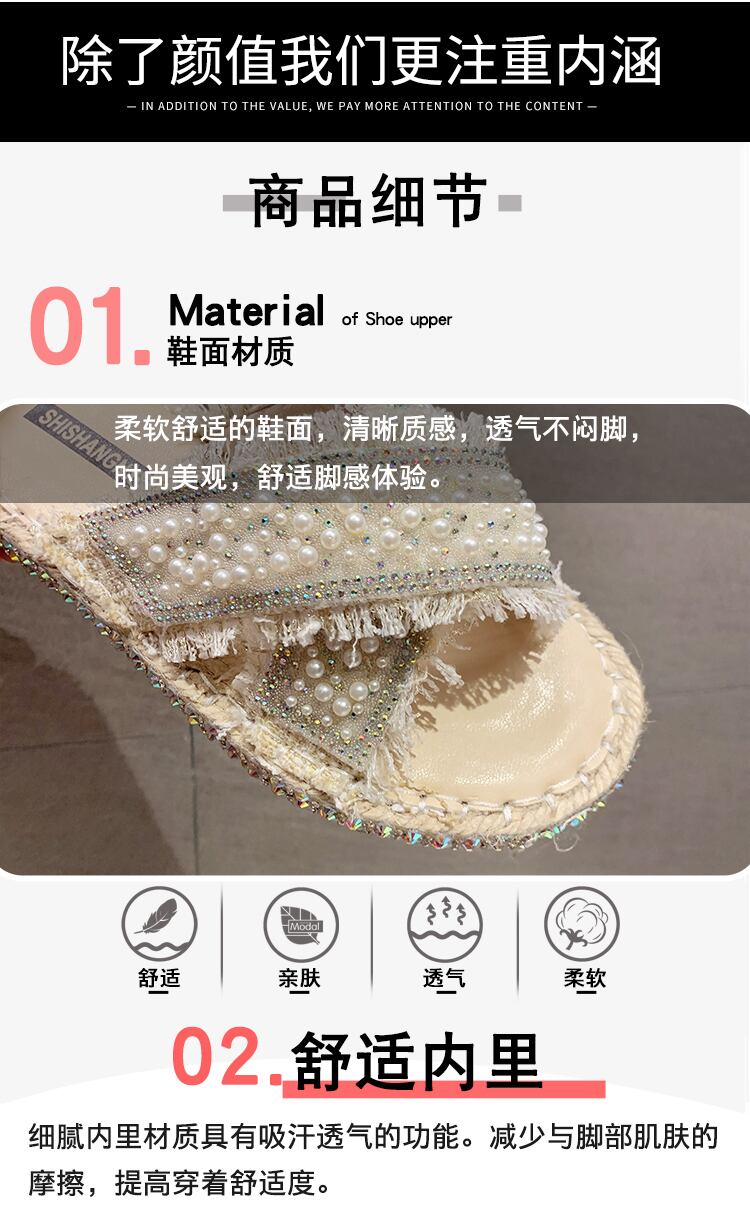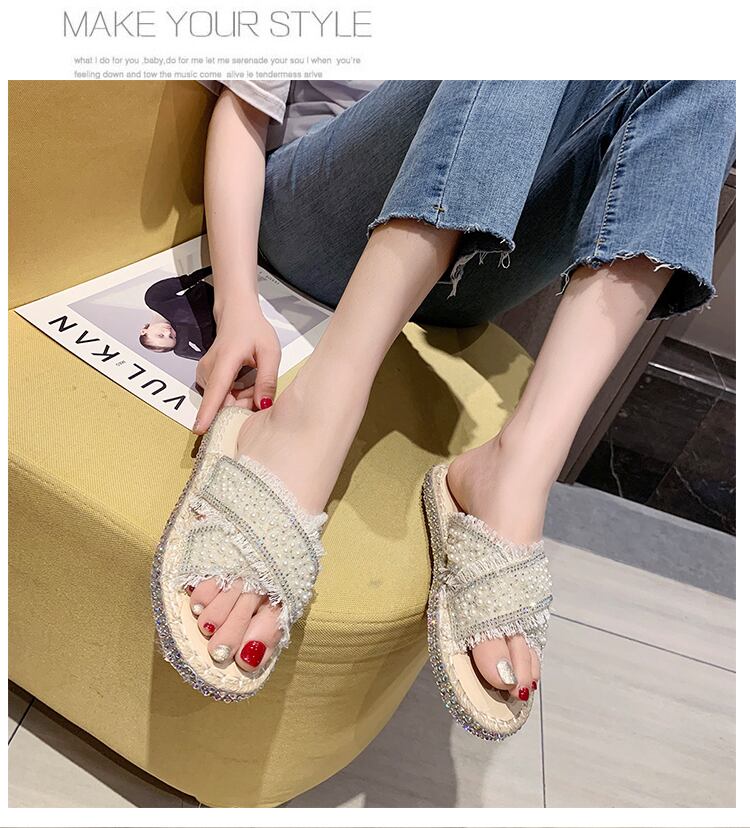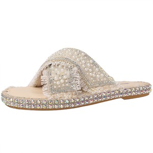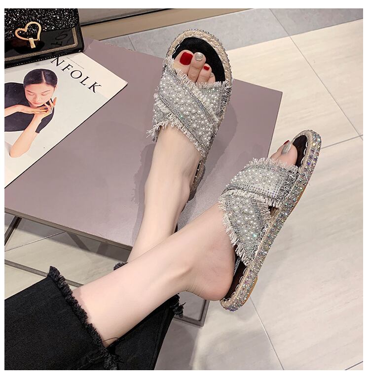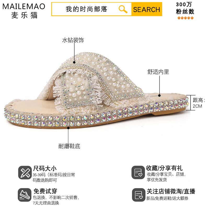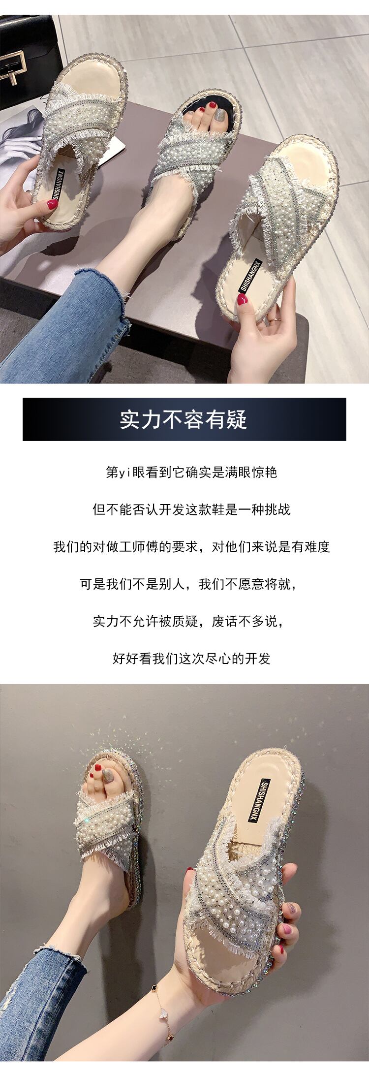 女性のサンダルとスリッパは2020年夏の新しいins真珠ファッションワイルドネット赤いフラットボトムドラッグ女性を着用します。 部族の婦人靴4390900