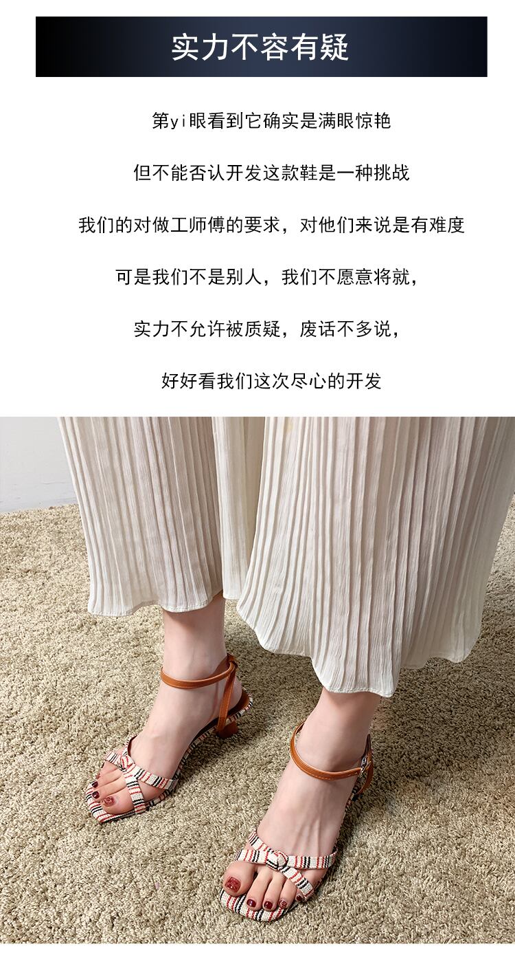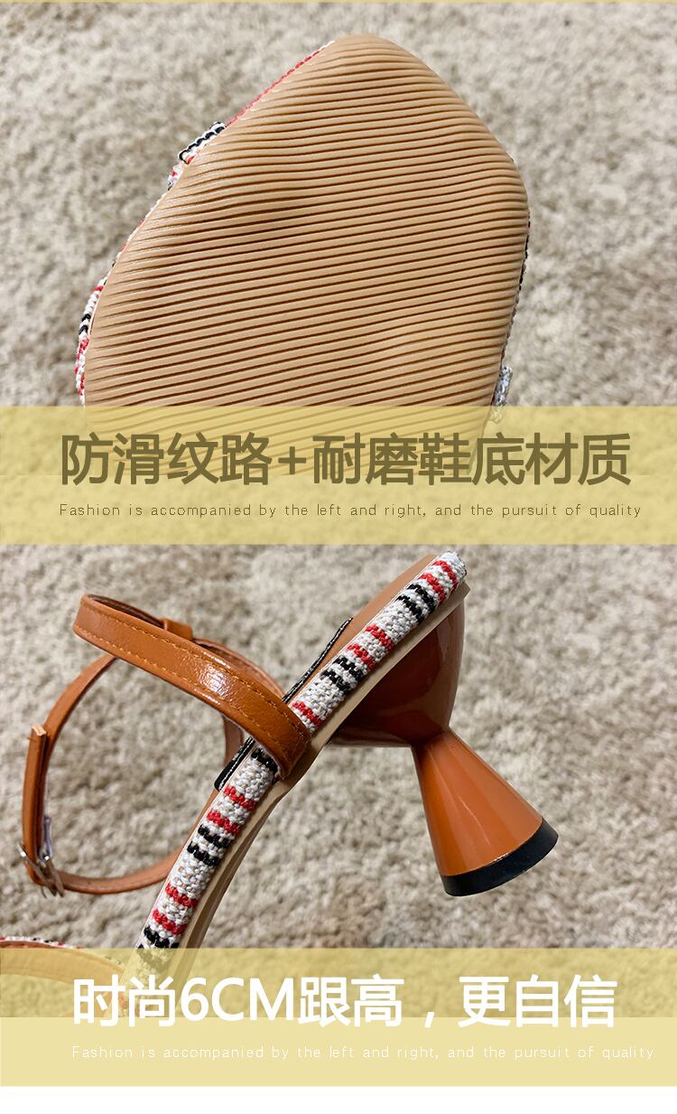 純赤いサンダル2020新しい春と夏の妖精スタイルファッションチェック柄オープンつま先薄いかかと 部族の婦人靴9350605