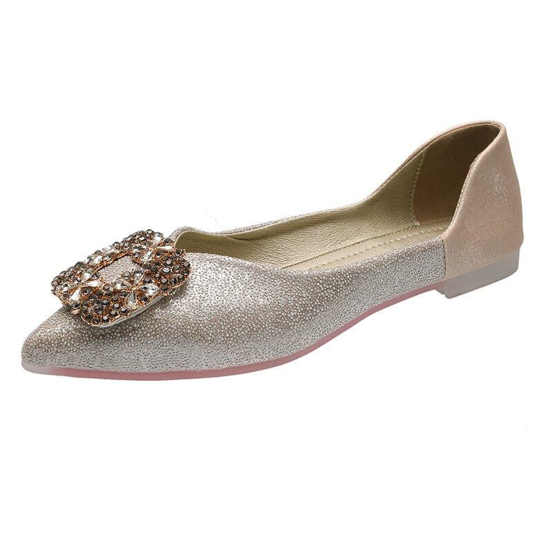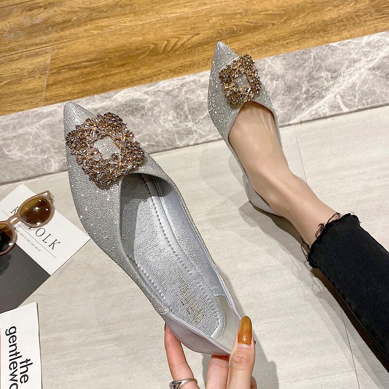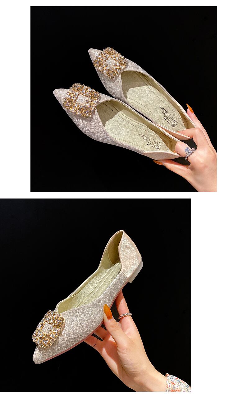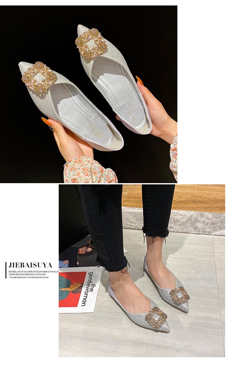 先のとがった単一の靴女性2020夏新しいinsファッションラインストーン浅い口フラットボトムペダルエンドウシューズ 部族の婦人靴9731472