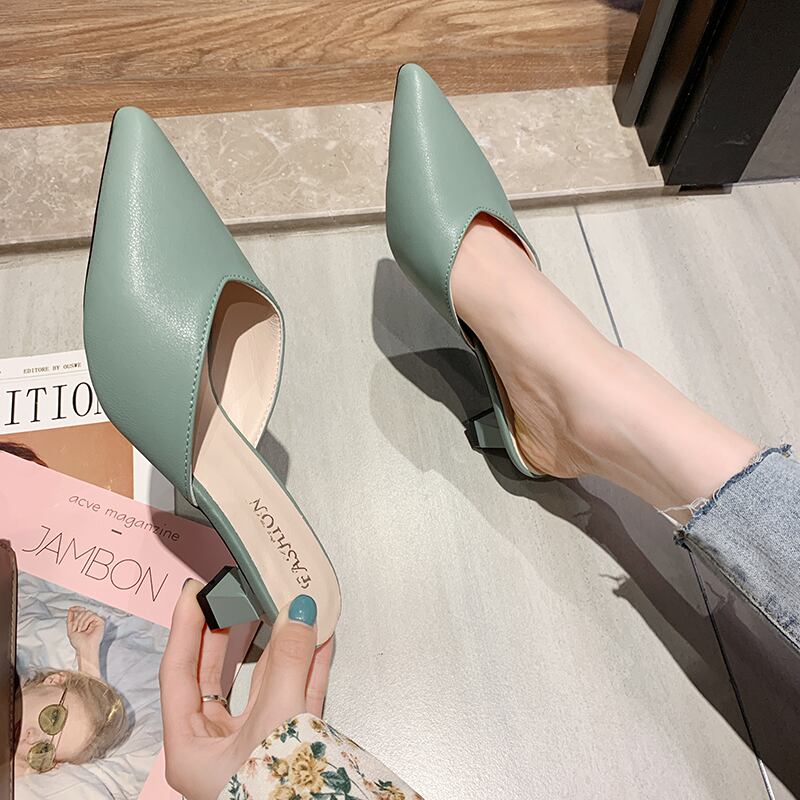 ネットの赤いサンダルとスリッパ女性の摩耗2020新しい春のファッション野生の尖ったMueller Baotouハーフスリッパ女性 部族の婦人靴2083136