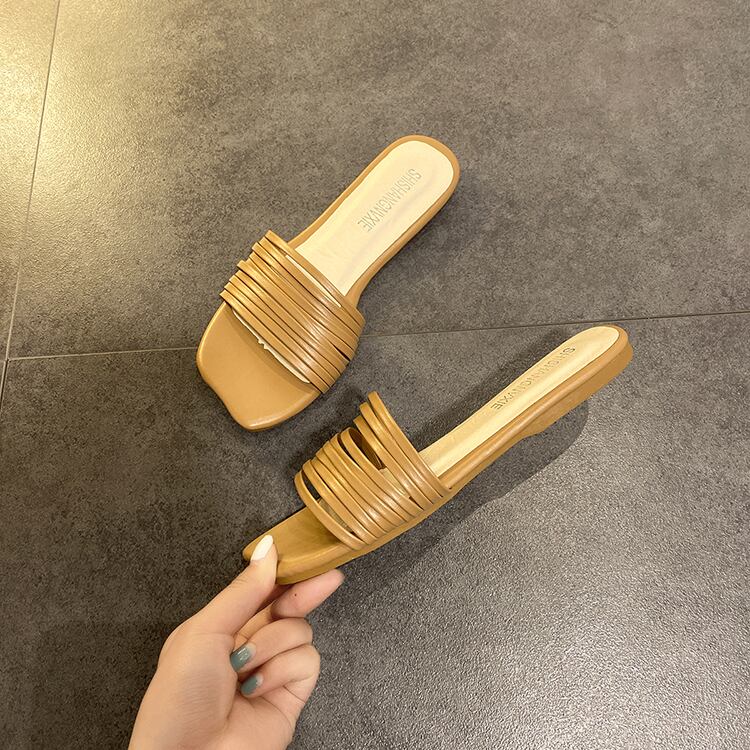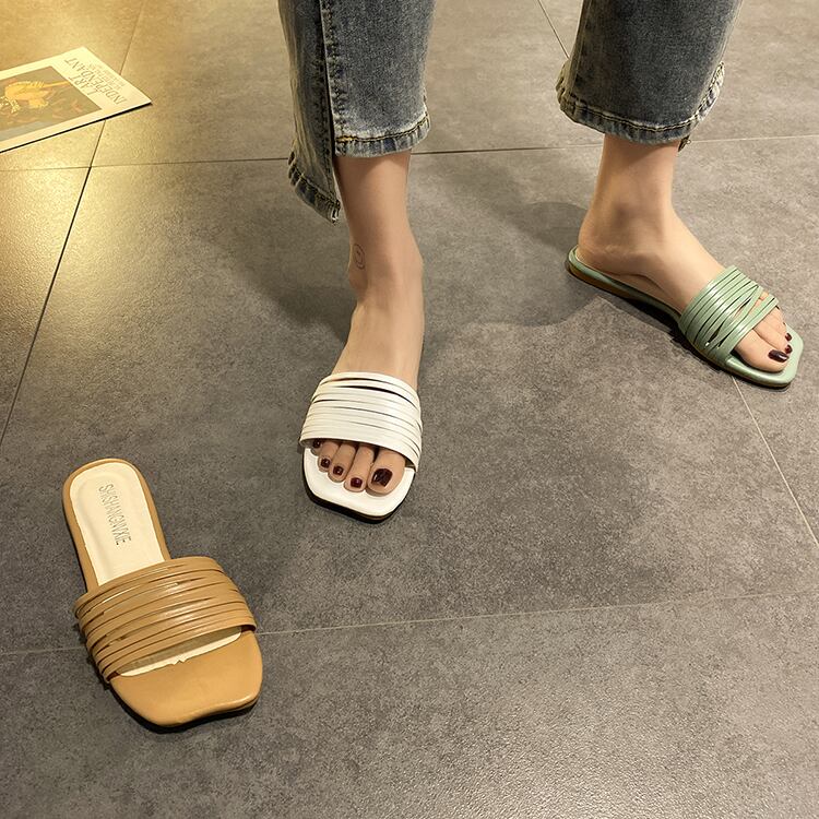 ワードスリッパ女性の妖精スタイル2020新しい夏の野生のネット赤の薄いストライプフラットボトムファッション摩耗女性のサンダル 部族の婦人靴3305305