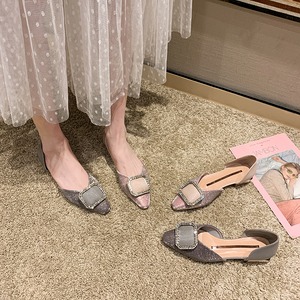 フラットボトムスシューズレディース2020春新しいバージョンの野生のファッションラインストーンスクープシューズネットレッドポイントワンペダルレディースシューズ 部族の婦人靴2395940
