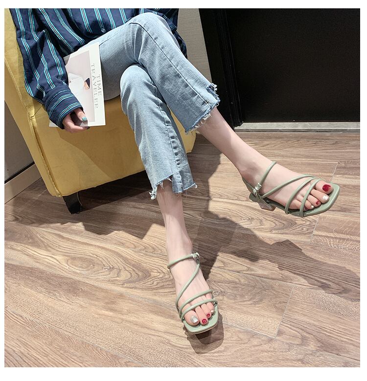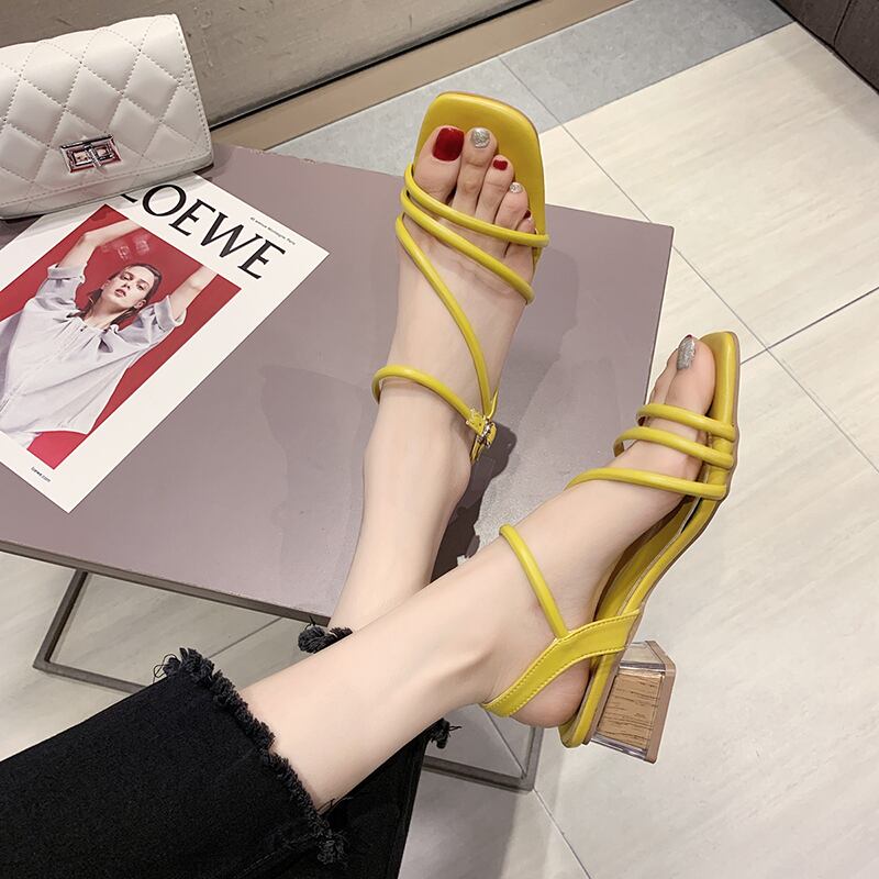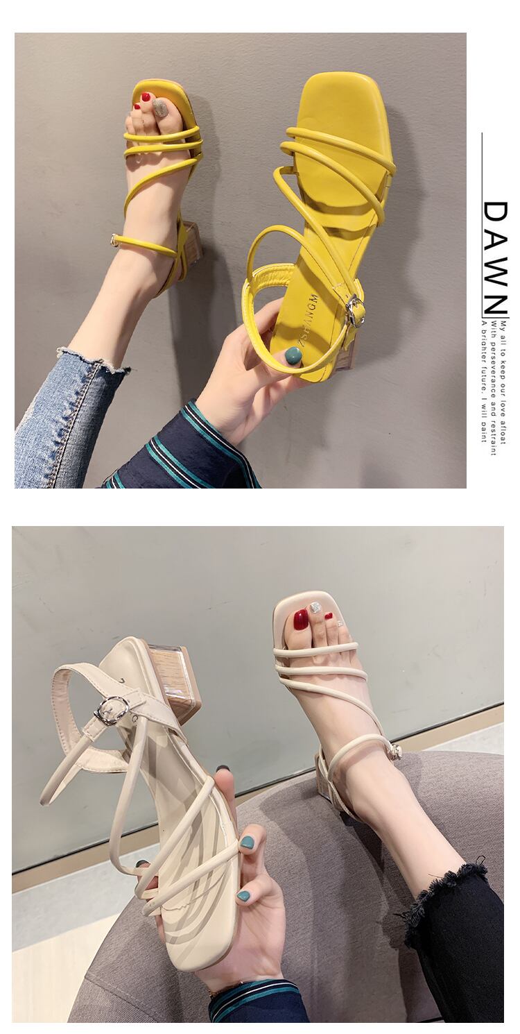 サンダル妖精スタイル2020新しい夏の厚いヒールミドルヒール野生のファッションハイヒールワードバックルローマンシューズ 部族の婦人靴7877419