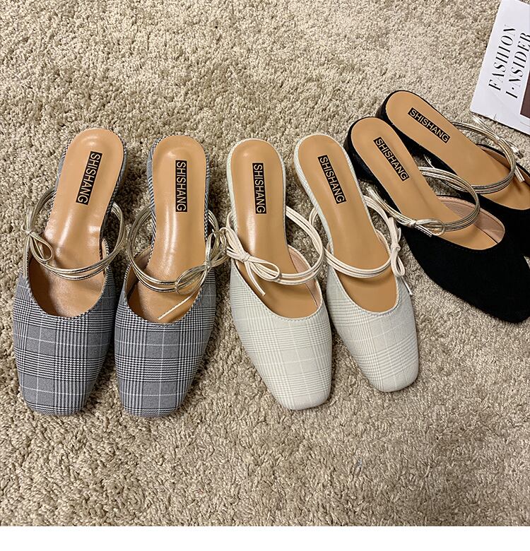 包頭ハーフスリッパ女性2020新しい女性の靴ファッション弓厚い小さな香りの風ミュラーシューズハーフサポートシングルシューズ 部族の婦人靴3476364