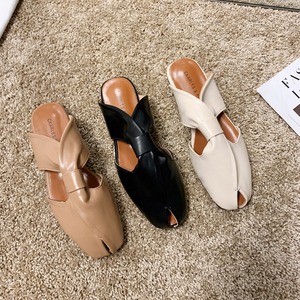 ネット赤フラットスリッパ女性2020春の新しいバージョンの野生のシックな包頭ハーフドラッグファッションサイド空のミュール 部族の婦人靴0495551