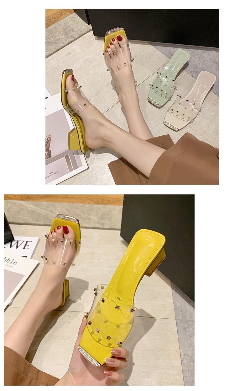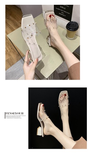 スリッパ女性は2020年夏の新しいバージョンのラインストーンファッションワイルドネット赤い妖精オープントゥ太いヒールを着用します 部族の婦人靴7048182