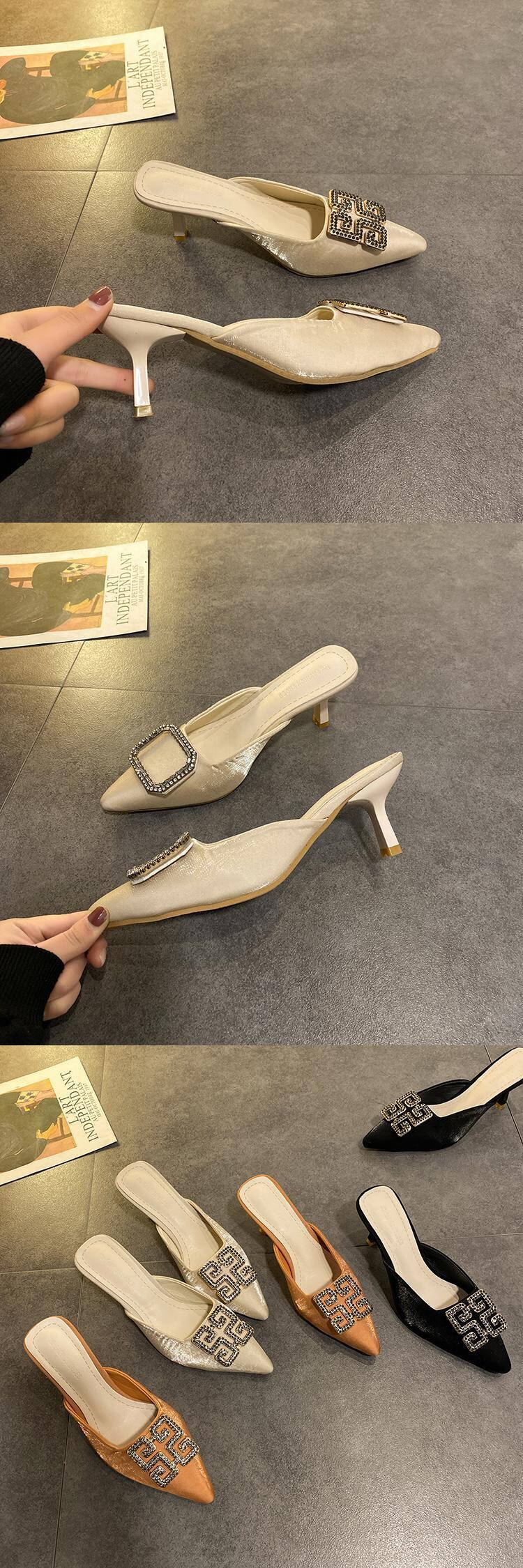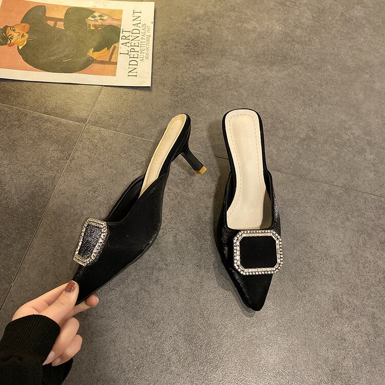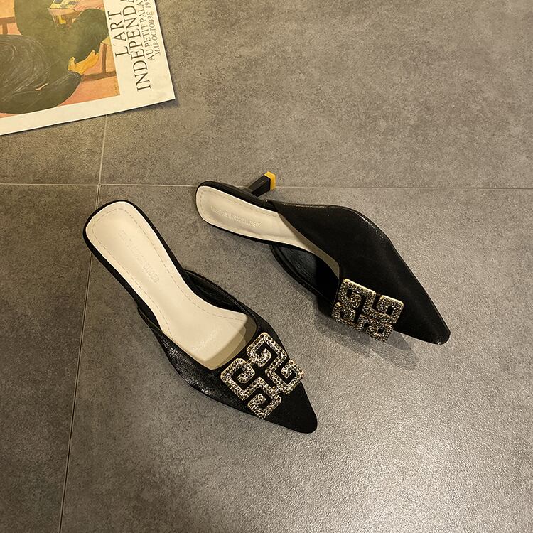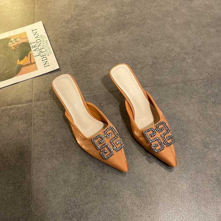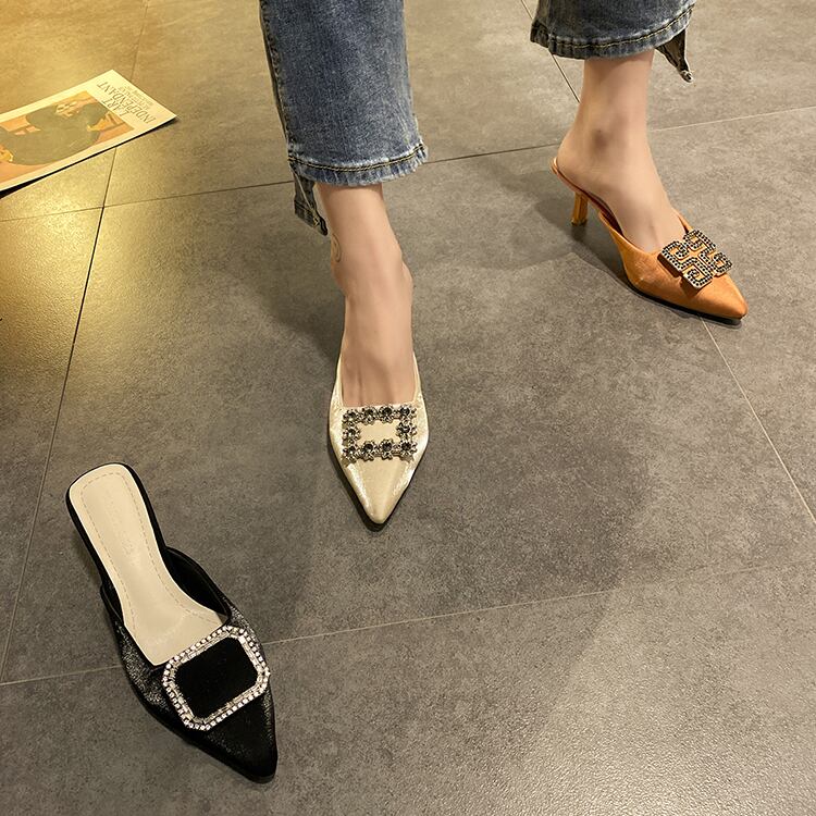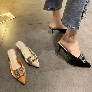 包頭ハーフドラッグ女性の摩耗2020春と夏の新しいスリッパは、野生のラインストーンのファッションサンダルで元気潮を指摘しました 部族の婦人靴8884440
