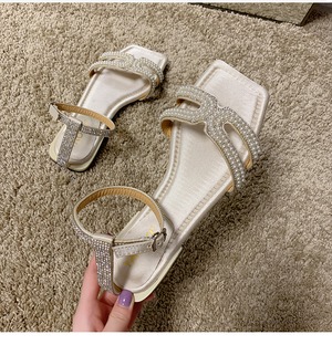 女性の靴夏のサンダル2020新しいファッションワイルドネットレッドインパールオープントゥフラットワードベルトローマンシューズ 部族の婦人靴6694097