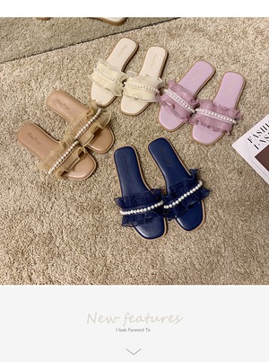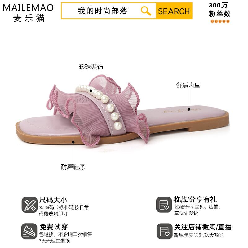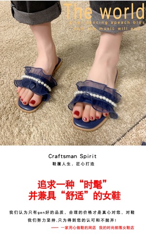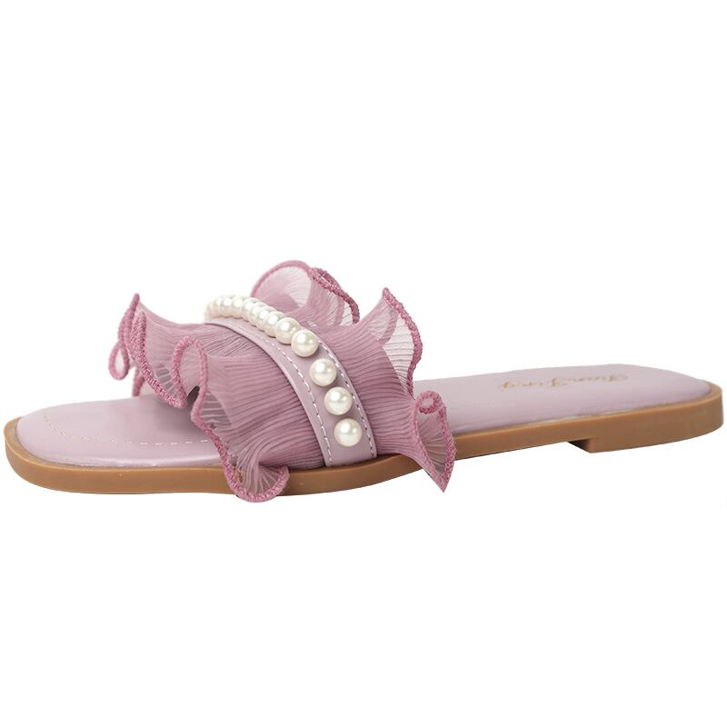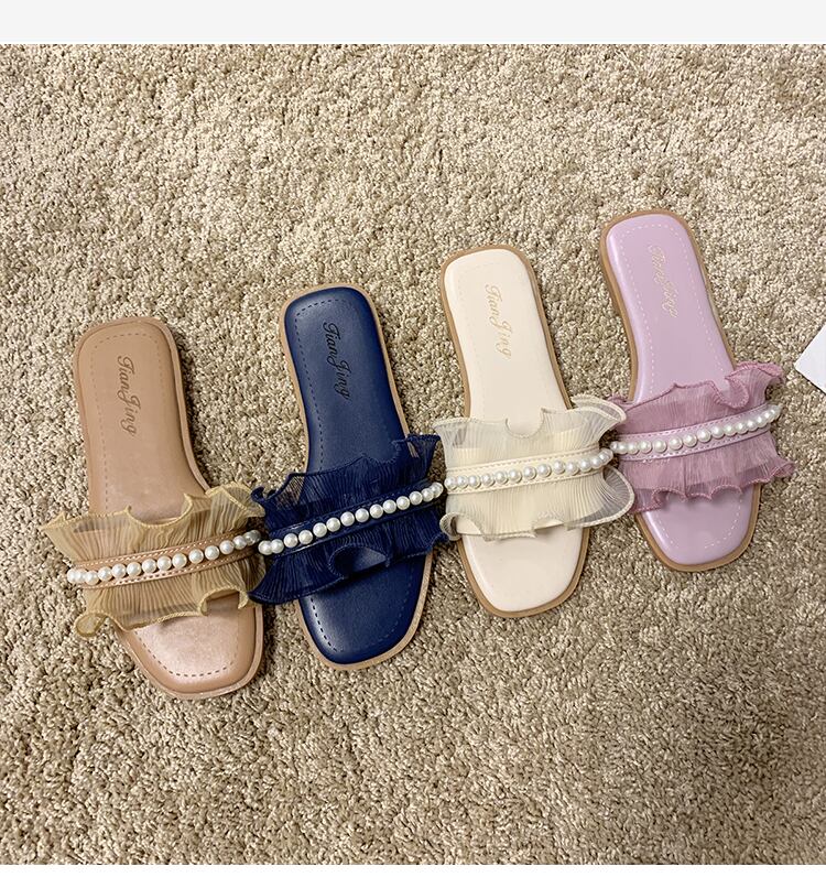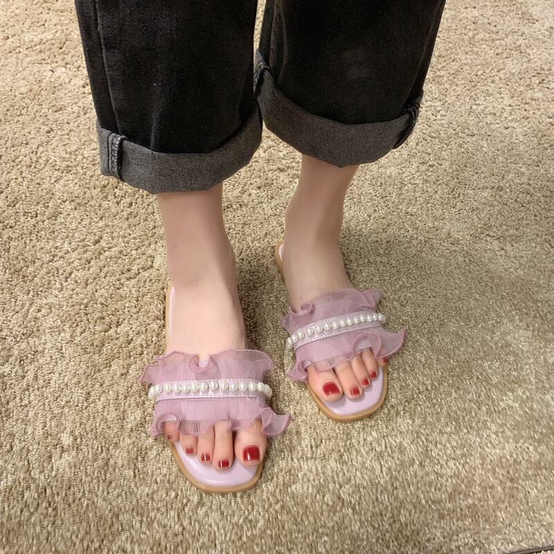 真っ赤なサンダルとスリッパ女性の摩耗2020年夏の新しいバージョンのパールファッションフラットボトムオープントゥ妖精風ドラッグ 部族の婦人靴3252941