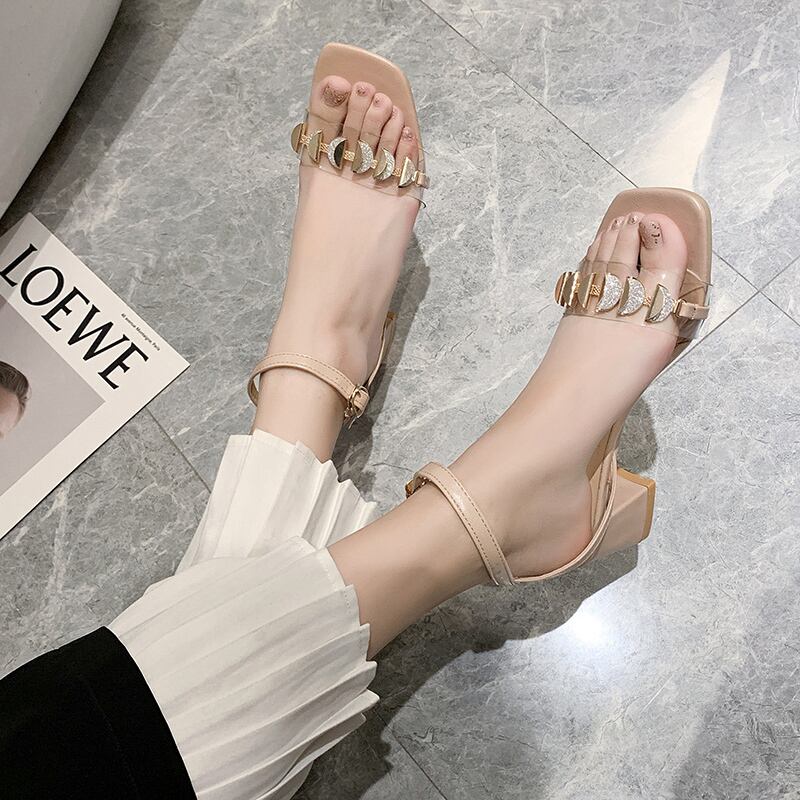 純赤のサンダル女性の妖精の風2020夏の新しいバージョンの野生の厚いハイヒールの女性の潮のつま先を開いた 部族の婦人靴1249668