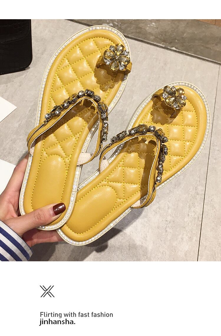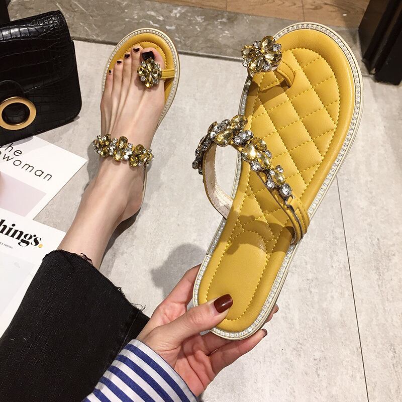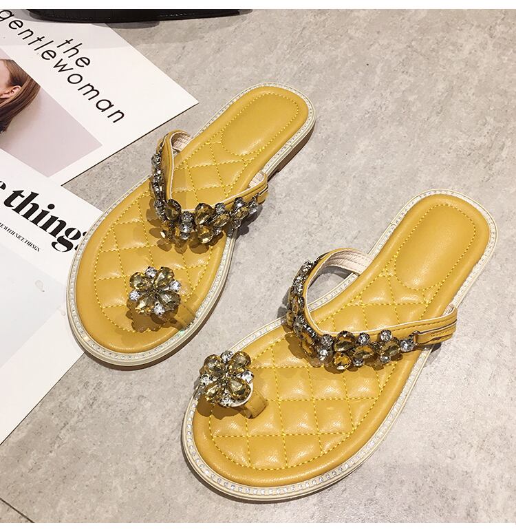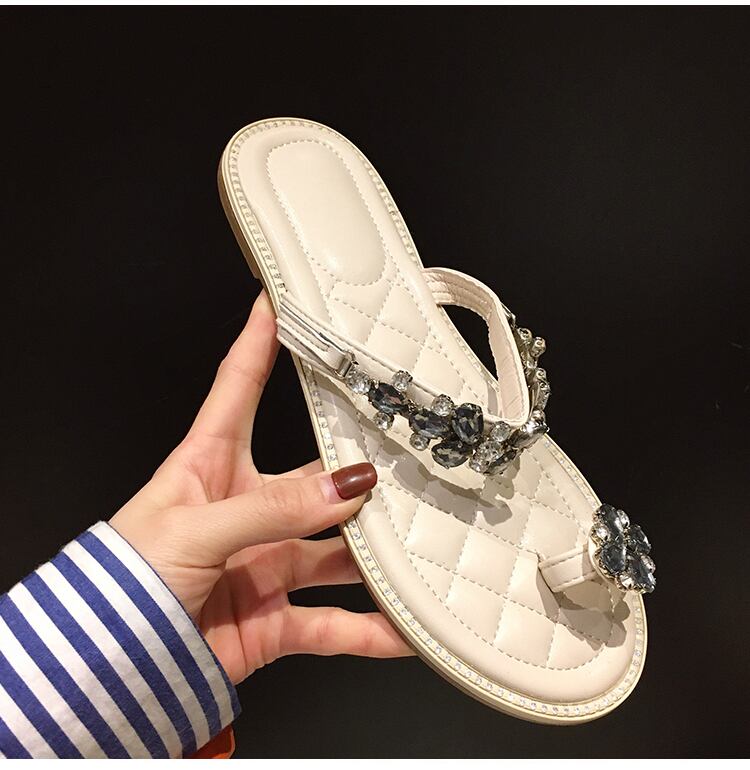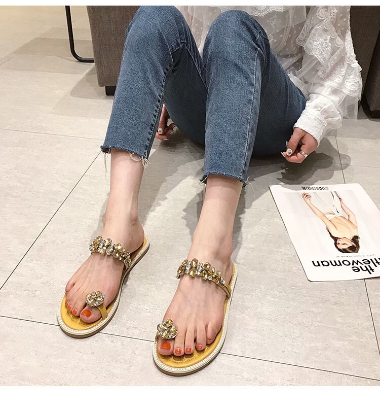 スリッパ女性は2020年夏の新しいinsバージョン野生のネット赤いラインストーンセットつま先フラットビーチサンダル女性を着用します 部族の婦人靴8217591