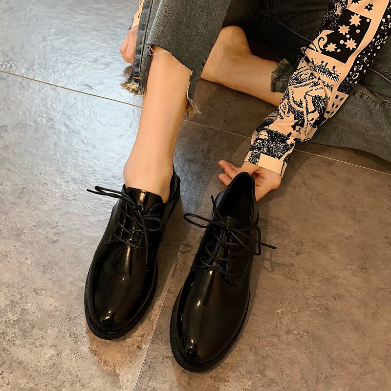 単一の靴の女性2019秋の新しいレトロな野生の学生のレースのフラットな底の厚さの英国スタイルの小さな革の靴の大学スタイル 部族の婦人靴2785392