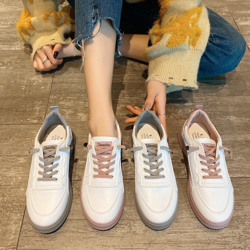 靴女性2020春新しいスタイルのファッションラウンドヘッドフラット白い靴学生レースストリートクラッパーシューズ潮 部族の婦人靴7068327