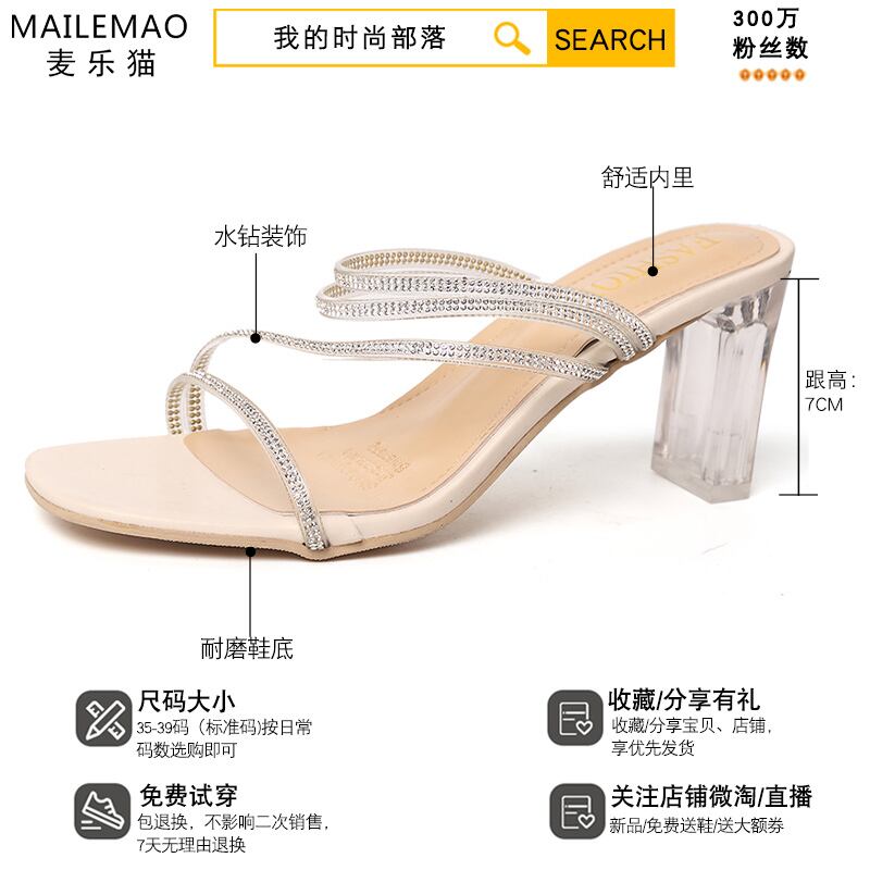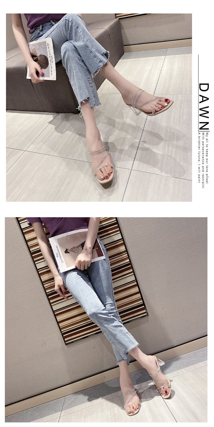フレンチサンダルとスリッパの女性は2020年の新しい夏のファッションを着て野生の厚い2つの摩耗のラインストーンサンダルの妖精スタイル 部族の婦人靴6032003
