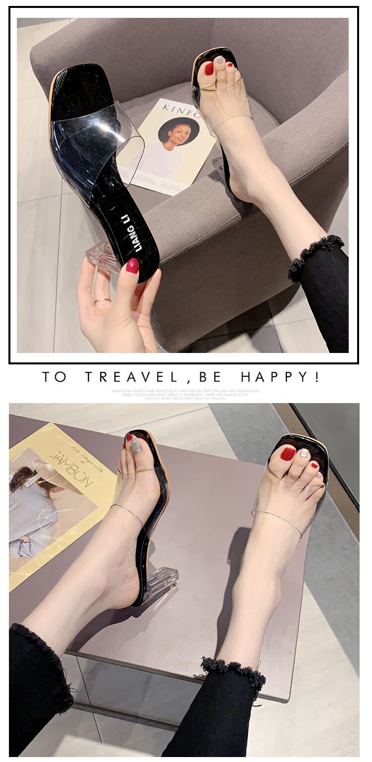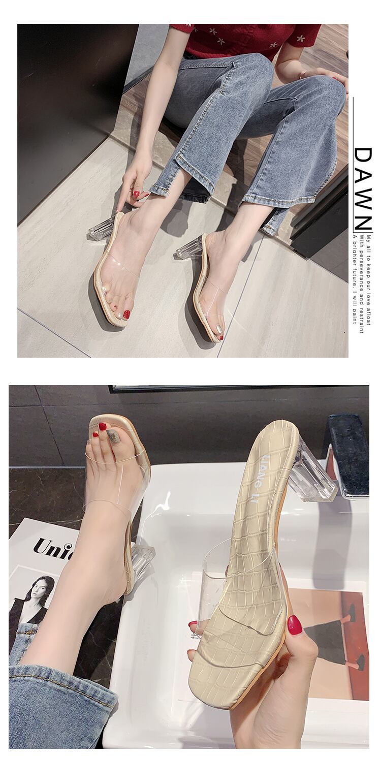 スリッパ女性はファッション夏2020新しい透明ベルトクリスタル厚いヒールサンダルinsタイドハイヒールを着用します 部族の婦人靴7682833