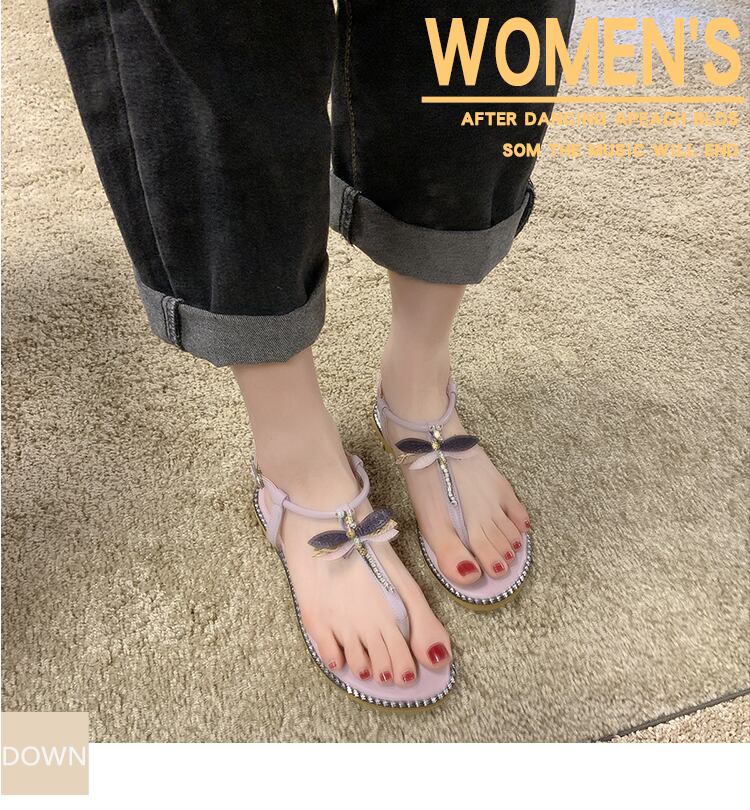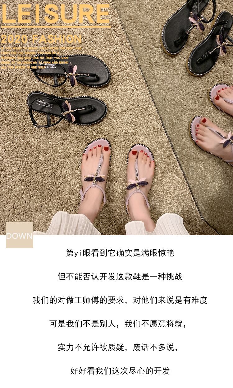 サンダル女性の妖精風フラットボトム2020新しい夏のネット赤いラインストーンソフトボトムクリップつま先ヘリンボーンサンダル潮 部族の婦人靴2774215