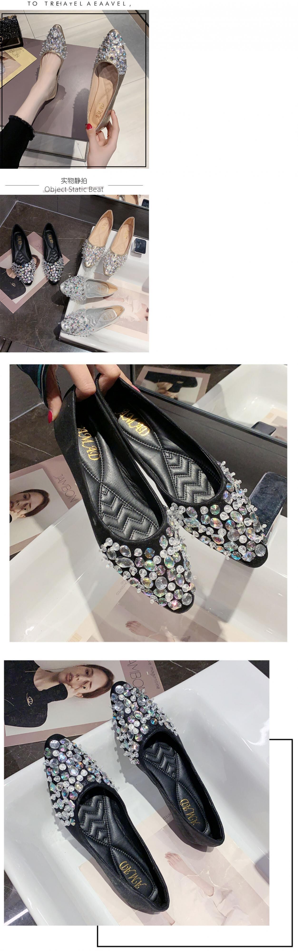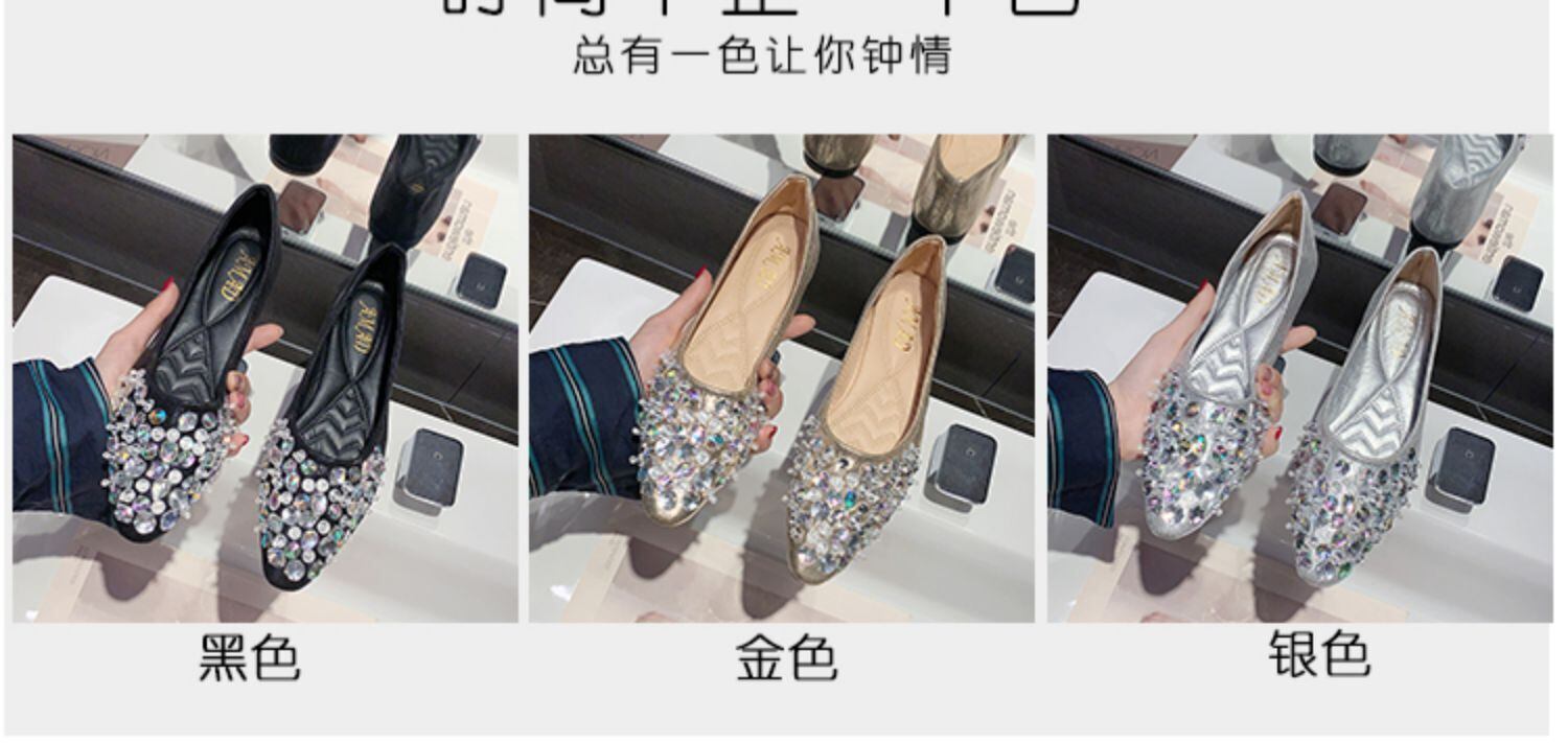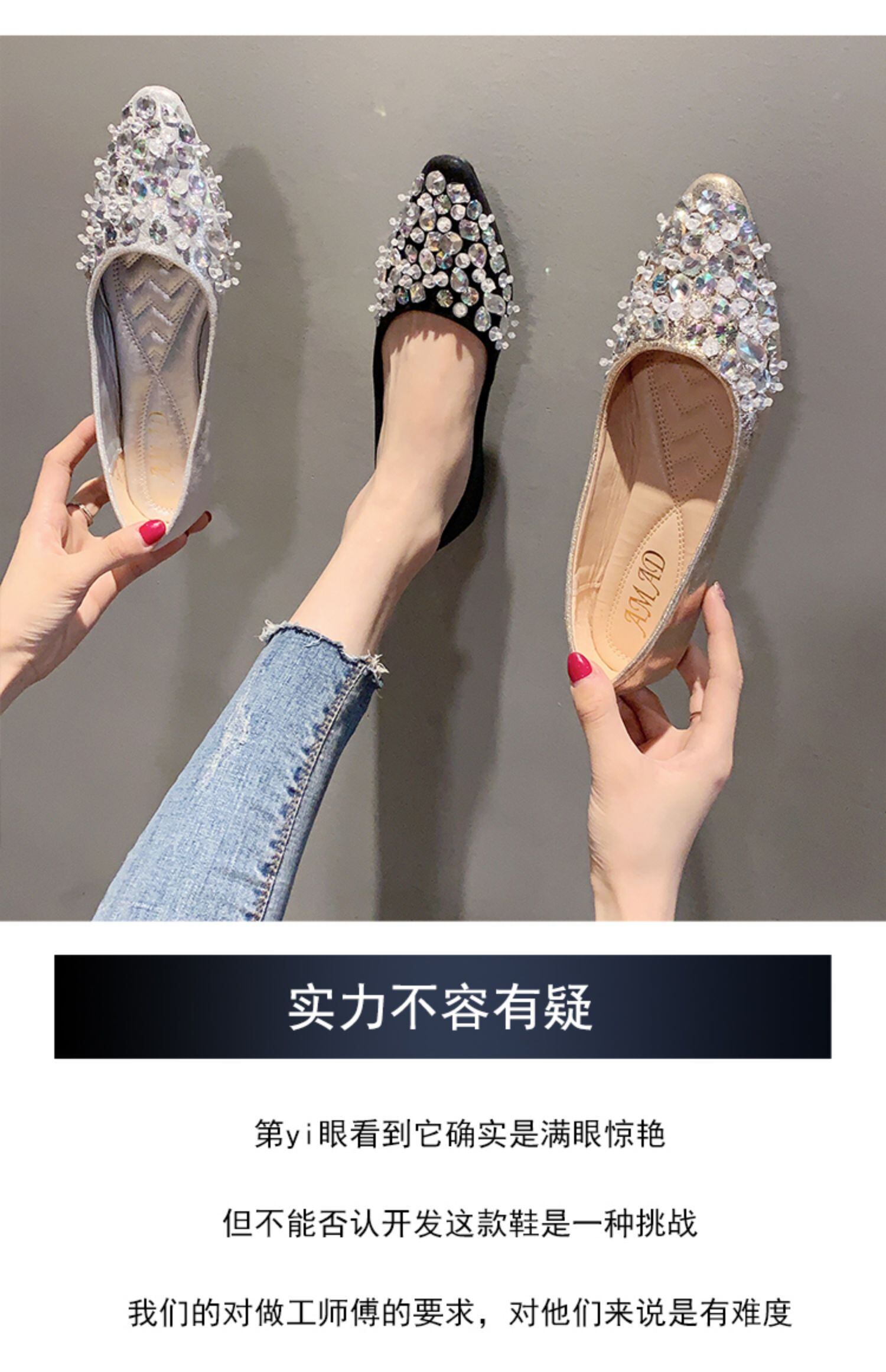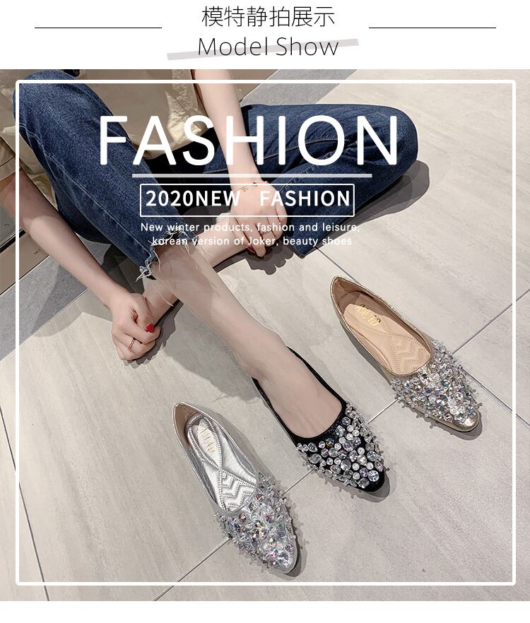 女性のシングル2020新しいネット赤明るい革ラインストーンフラットボトム浅い口妖精スタイル穏やかなエンドウ豆靴1ペダルスクープシューズ 部族の婦人靴6493049