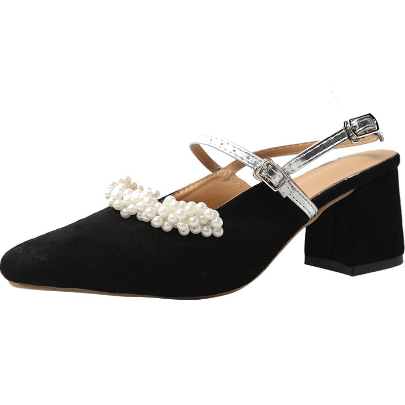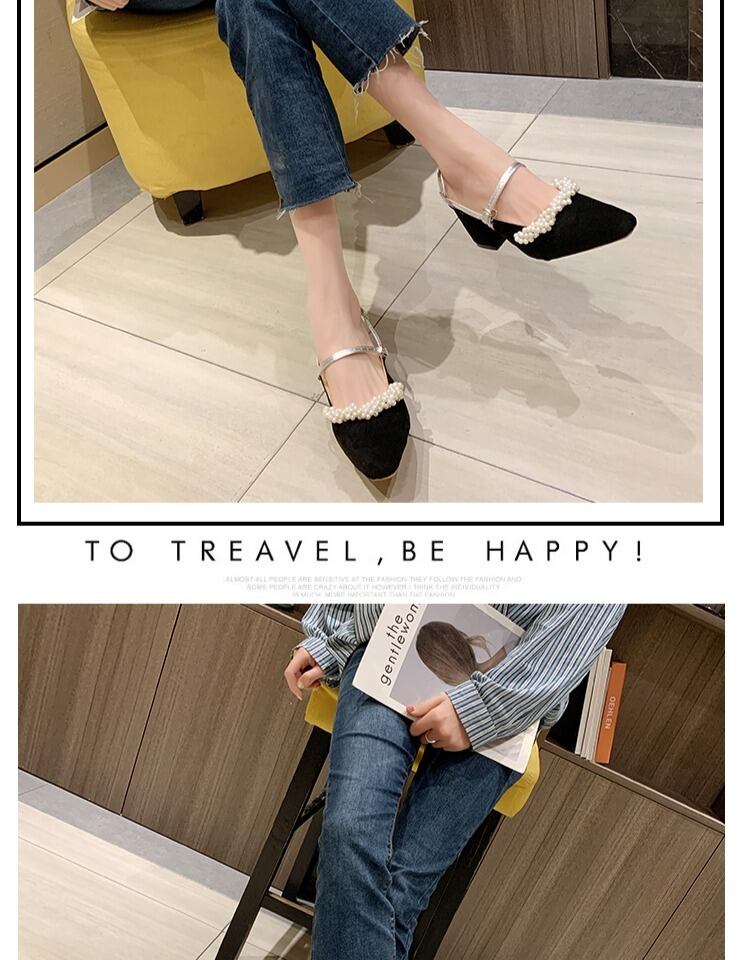 女性のファッションサンダル2020春と夏の新しいネット赤ファッションワイルドパール包頭バックルチャンキーヒールハイヒール 部族の婦人靴2079499