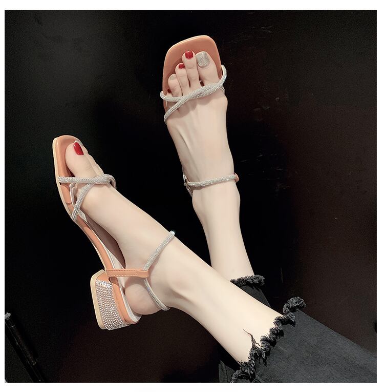 ハイヒールの厚いヒールのローマの靴のファッション妖精ネット赤いラインストーンinsタイドセットのサンダル女性2020新しい夏バージョン 部族の婦人靴3643919