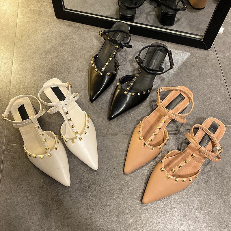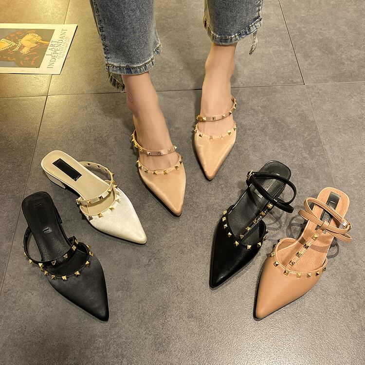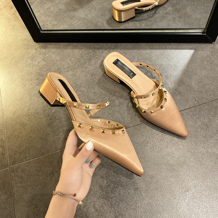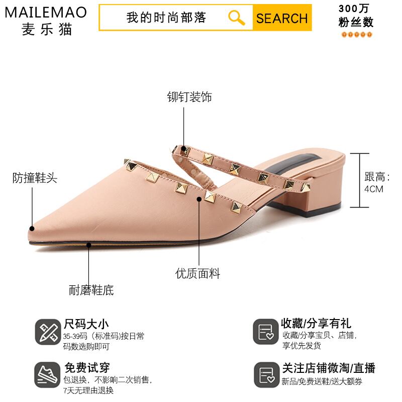 夏のファッションのスリッパ2020新しい女性バージョンは、ノンスリップ包頭ミュール靴ins潮で厚いリベットを指摘しました 部族の婦人靴9449246