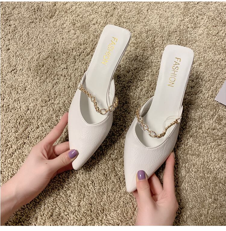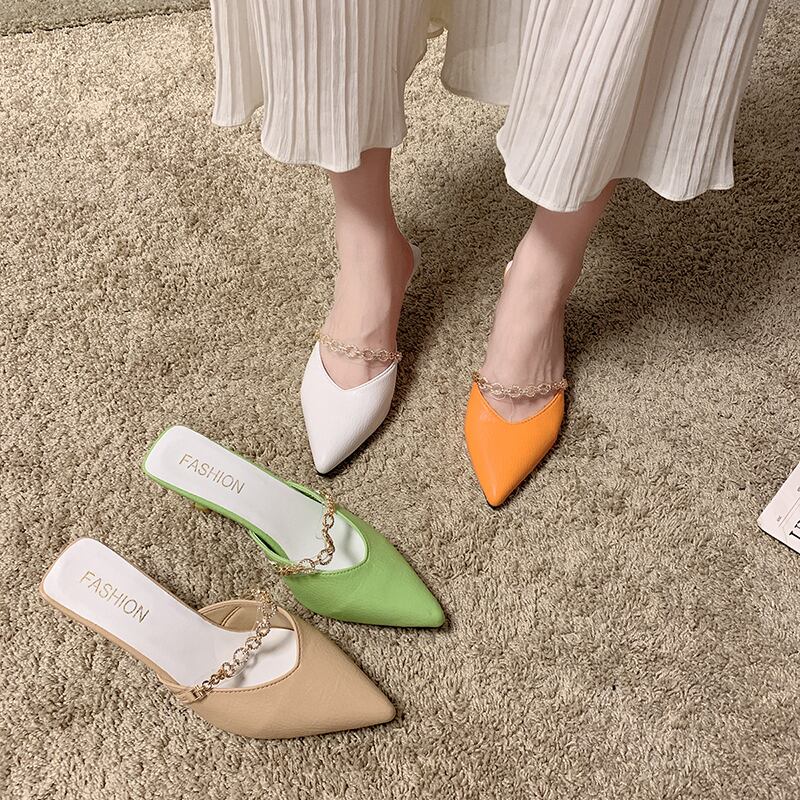 包頭半スリ​​ッパ女性2020年の新しい夏のネット赤イン潮の尖った野生のすべての試合の薄いヒールのファッションミュール 部族の婦人靴3177983