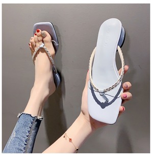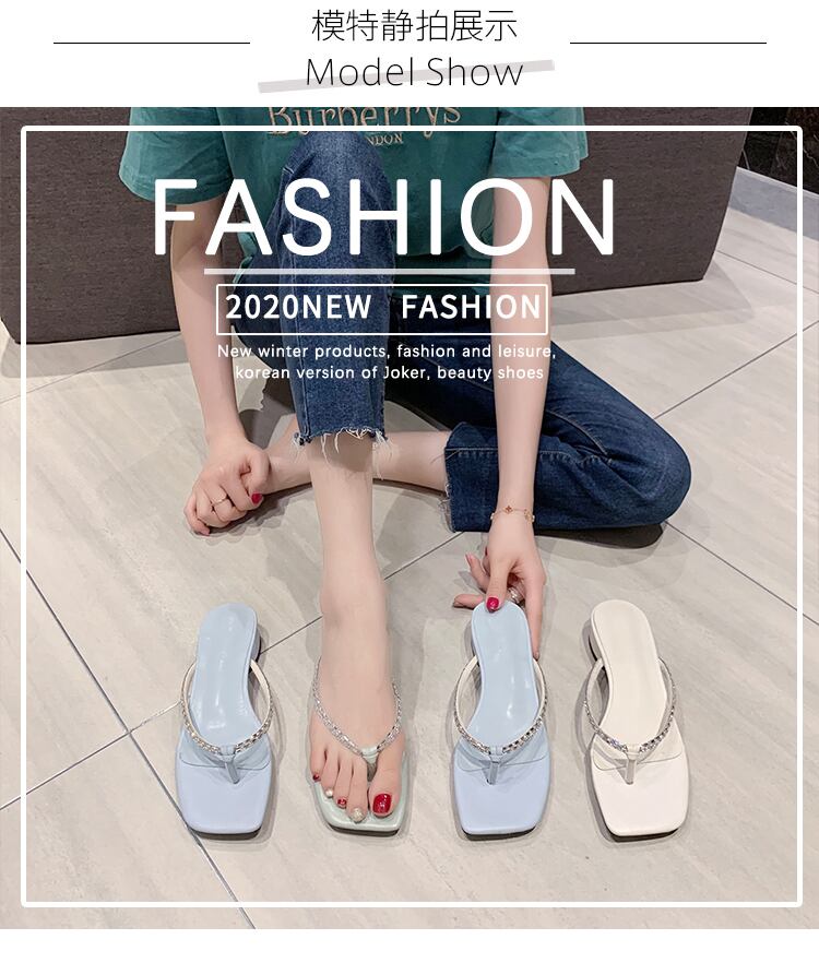 純赤のサンダルとスリッパ女性2020新しいファッション夏の野生のラインストーンスクエアヘッドフラット底フリップフロップ女性の滑り止め 部族の婦人靴3178444