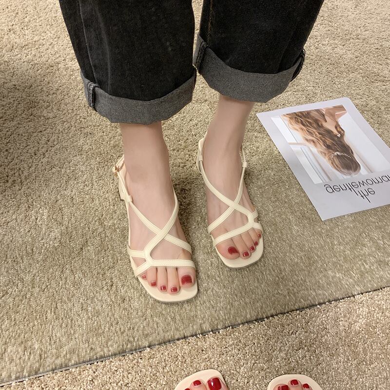ローマの女性の靴と厚い夏の野生のクロス薄いベルトハイヒールのファッションのネットの赤いサンダル女性2020新しいバージョン 部族の婦人靴7570160