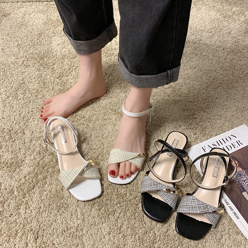 かかとの女性の2020新しいバージョンのネットレッドイン女性のファッションサンダルオープントゥフェアリースタイルの厚いヒールカジュアルシューズ 部族の婦人靴6212695