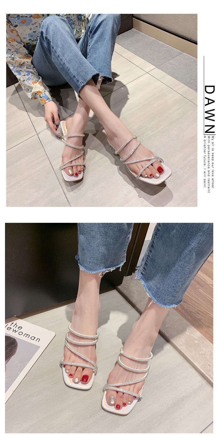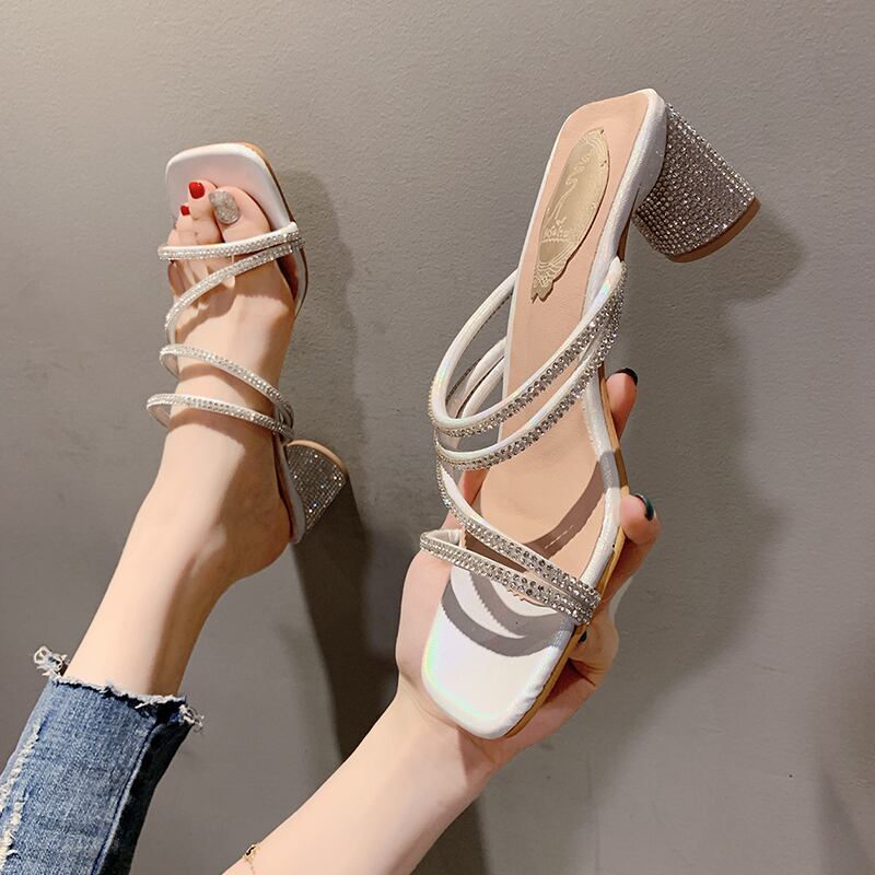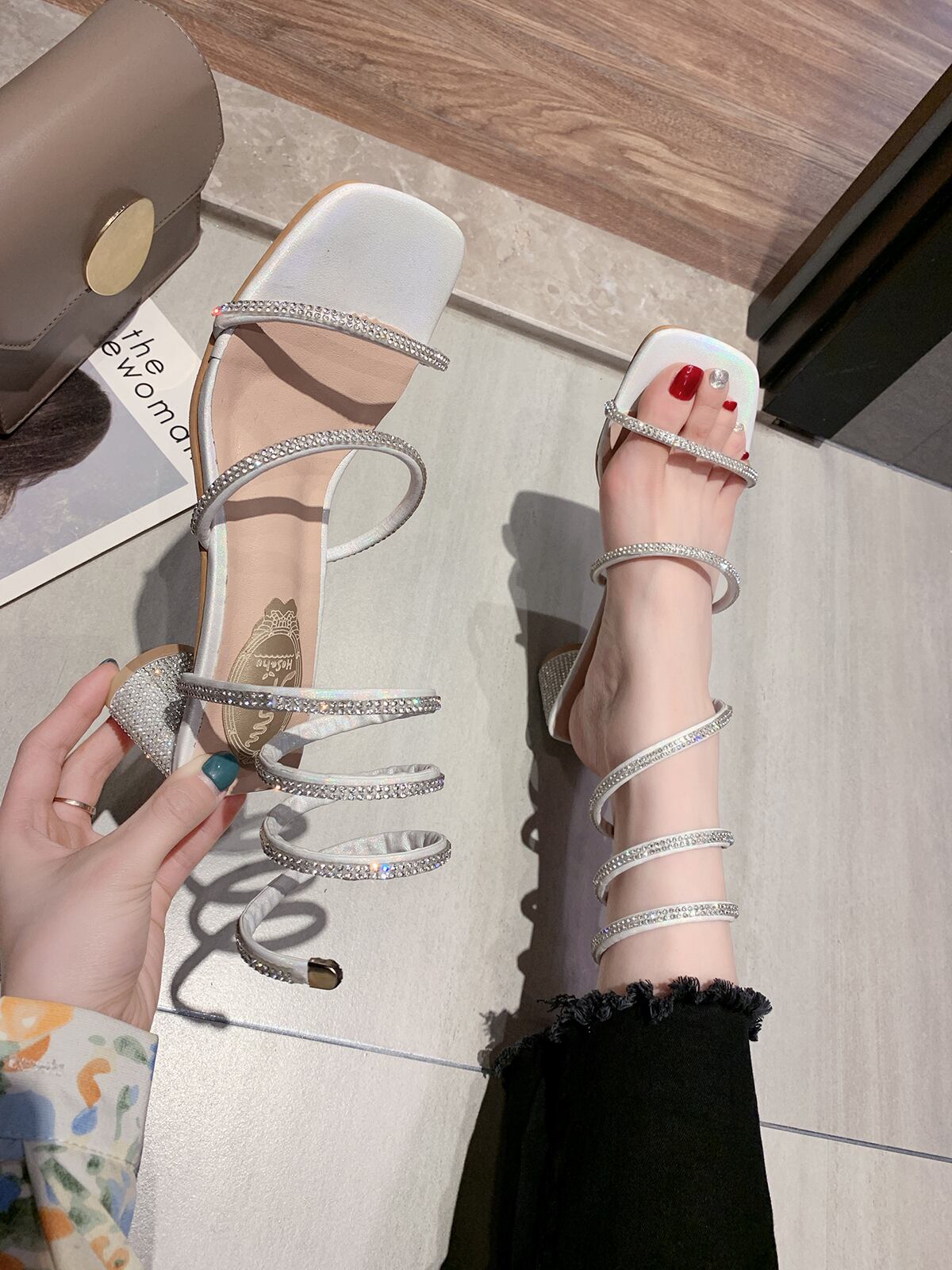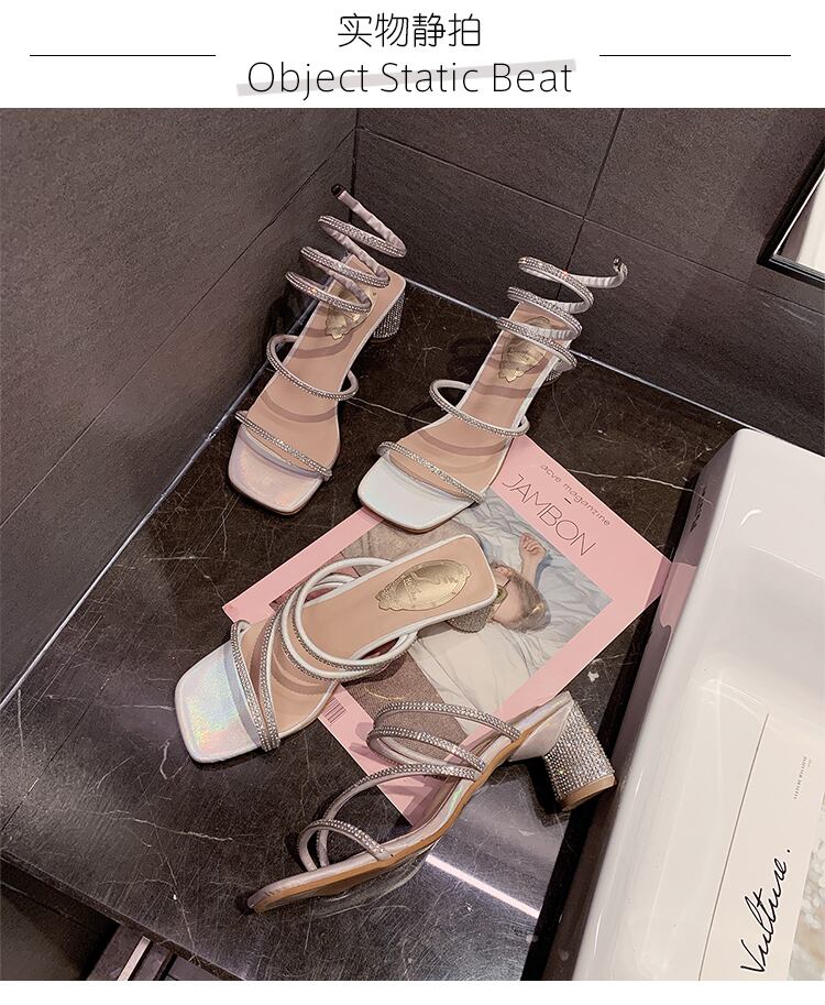 サンダル女性2020夏新しいins万能ファッションオープントゥネット赤ラインストーン蛇蛇巻き厚いヒール 部族の婦人靴7294627
