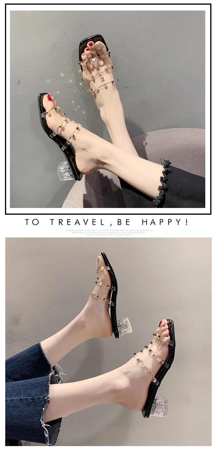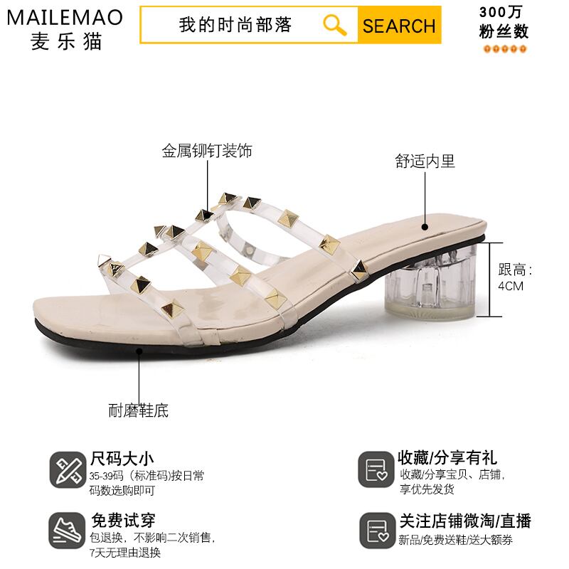 スリッパ女性insタイド2020新しい夏のファッション野生のネット赤厚いオープントゥハイヒールワードサンダル 部族の婦人靴0715348