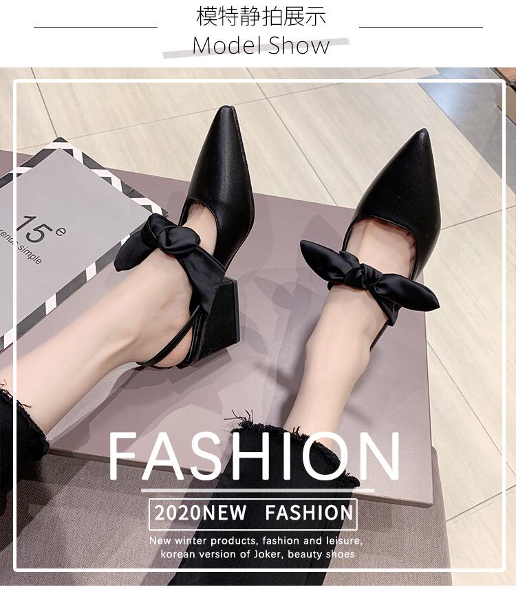 先のとがったサンダル女性2020新しい春ネット赤ファッション弓太包妖精スタイル野生の単一の靴の潮 部族の婦人靴5850399