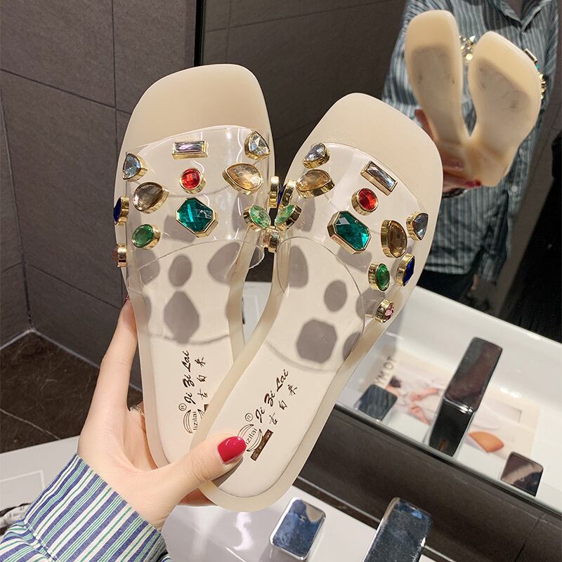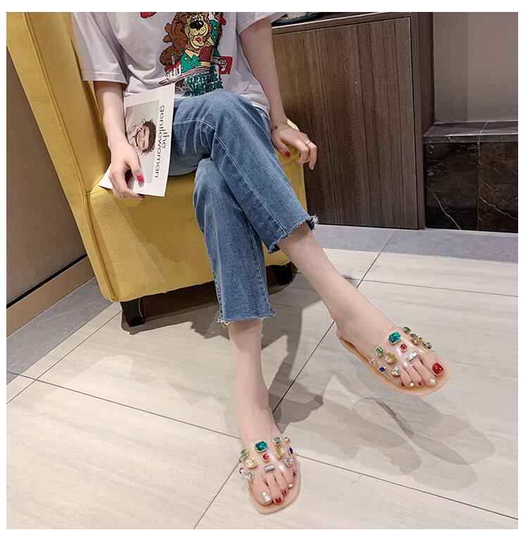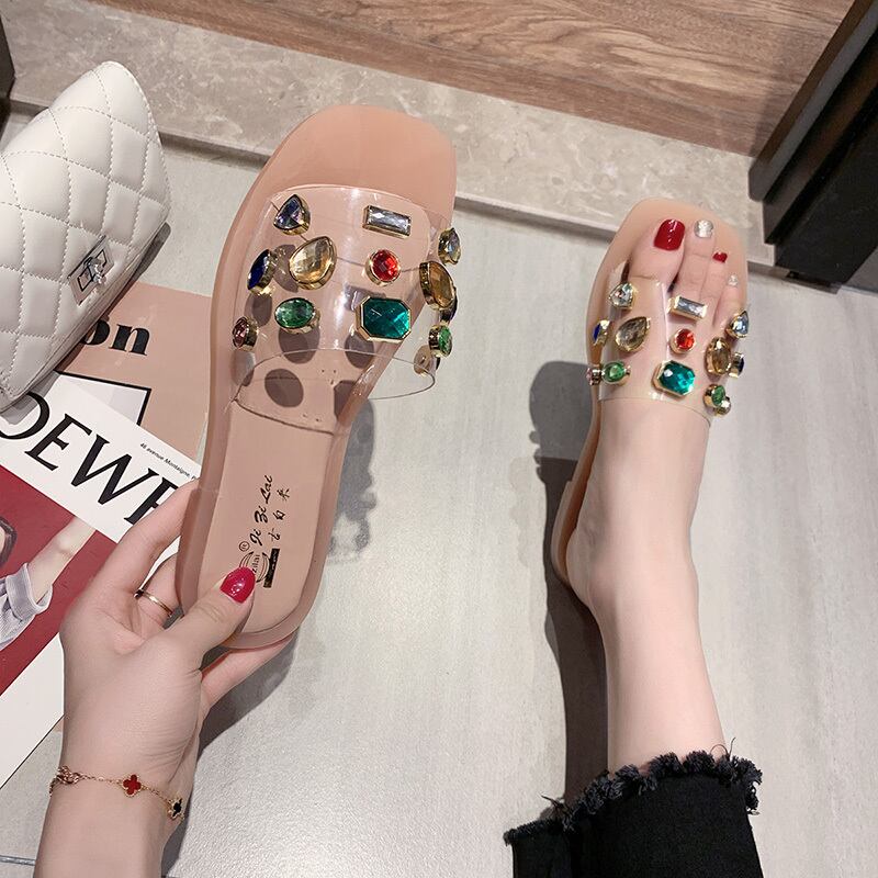 スリッパは、女性のファッション2020年夏のワイルドネット赤イン潮潮ラインストーンフラットボトムサンダルの新しいバージョンを着用します。 部族の婦人靴8723042