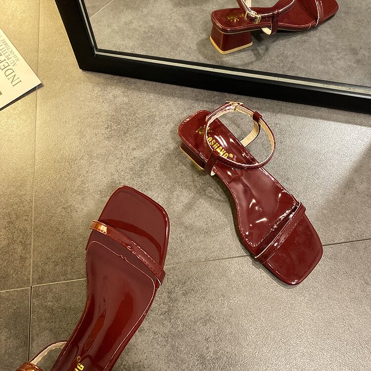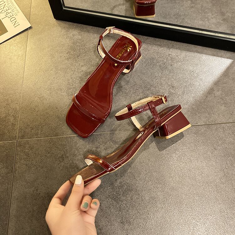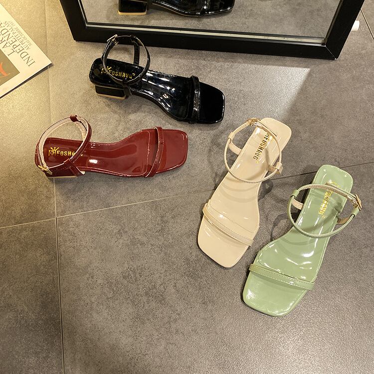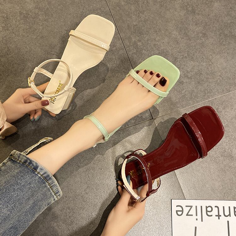 女性のサンダル女性INS潮2020新しい夏のファッションスクエアヘッドワイルドフェアリースタイルフレンチワードバックルレディースシューズ 部族の婦人靴1166095