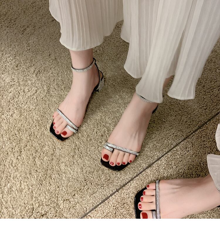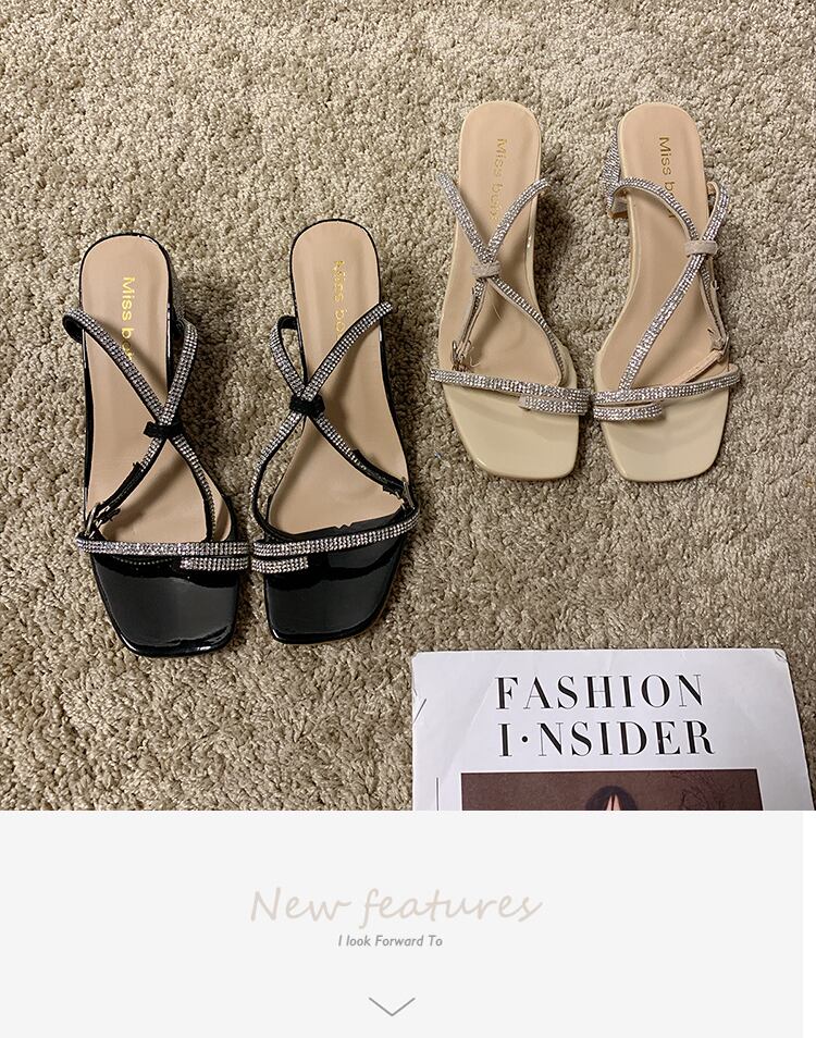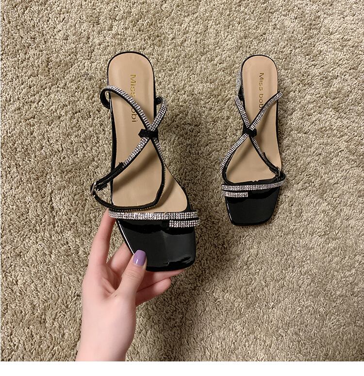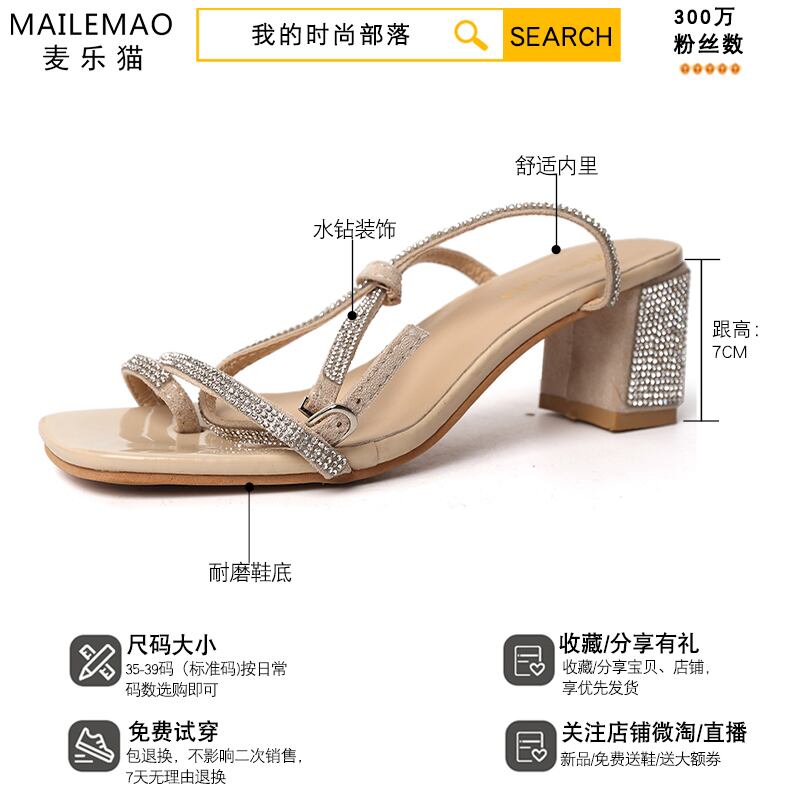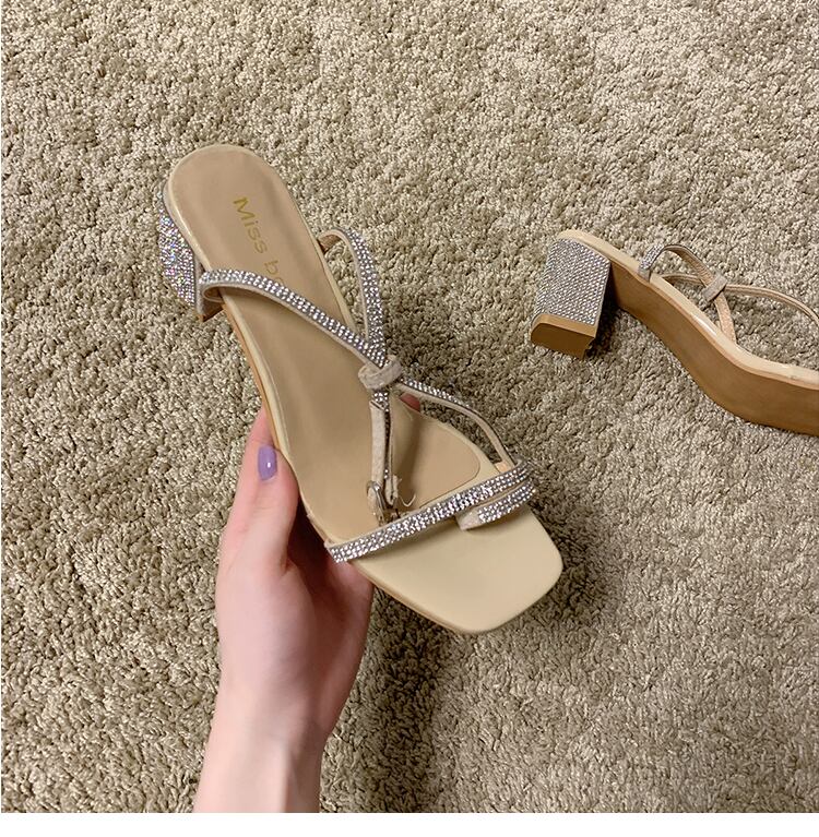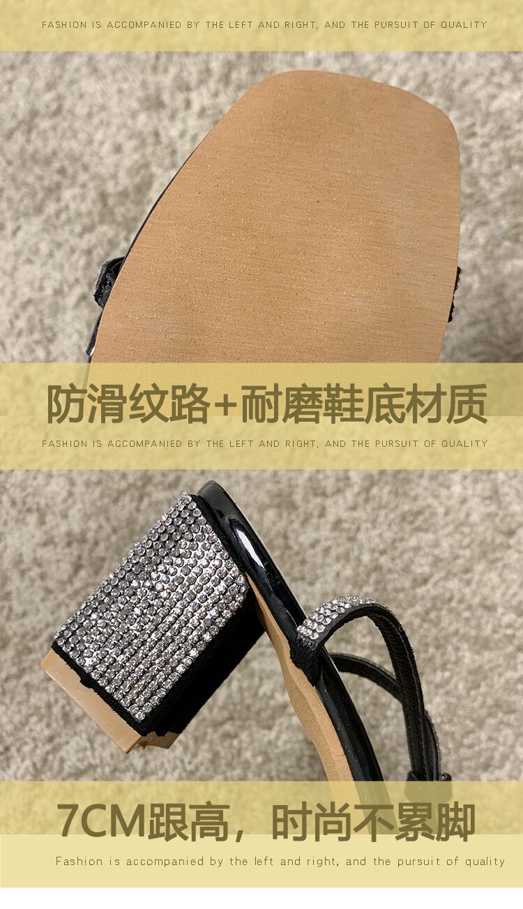 厚いヒールサンダル女性2020年夏の新しいファッションワイルドネットレッドオープントゥラインストーンワードバックルローマの靴の潮 部族の婦人靴1780096