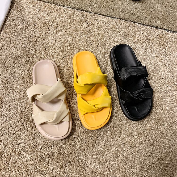 スリッパ女性インスタイド2020夏新アウター厚底ハートフラットボトムワードドラッグ学生サンダル 部族の婦人靴1512141