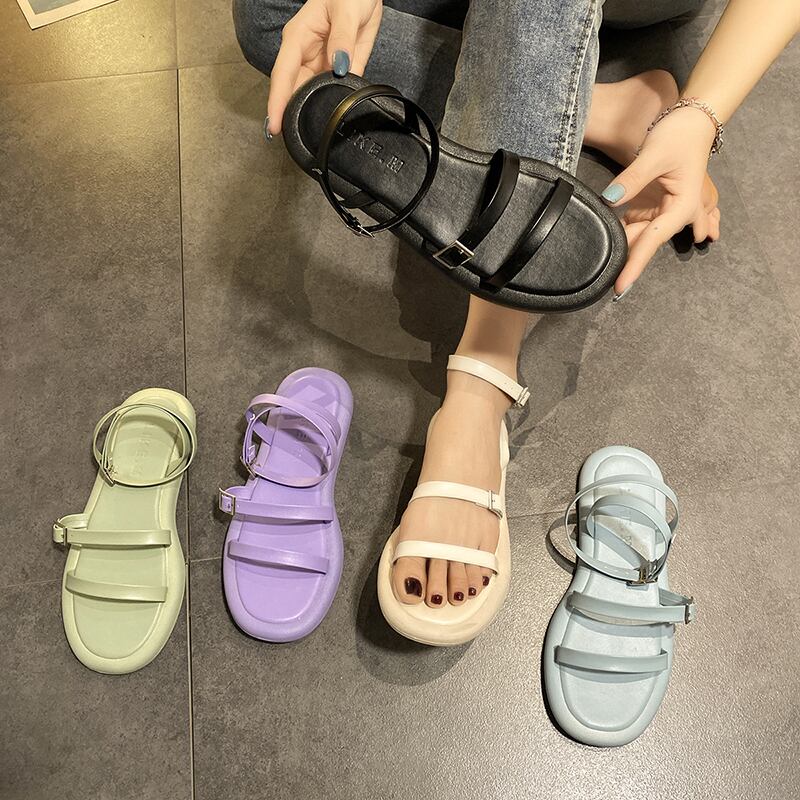 ネットレッドサンダル女性2020新しい夏の女性の靴フラットボトムオープントゥフェアリースタイルのファッションワードとローマの靴 部族の婦人靴1347405