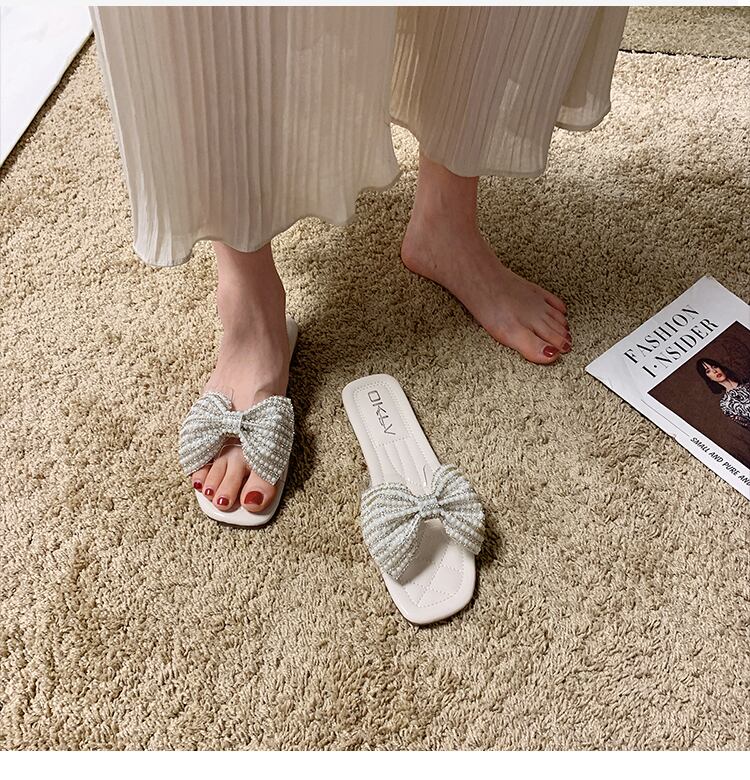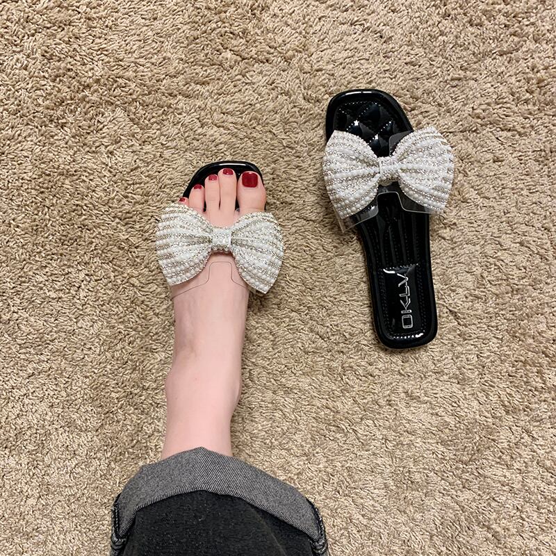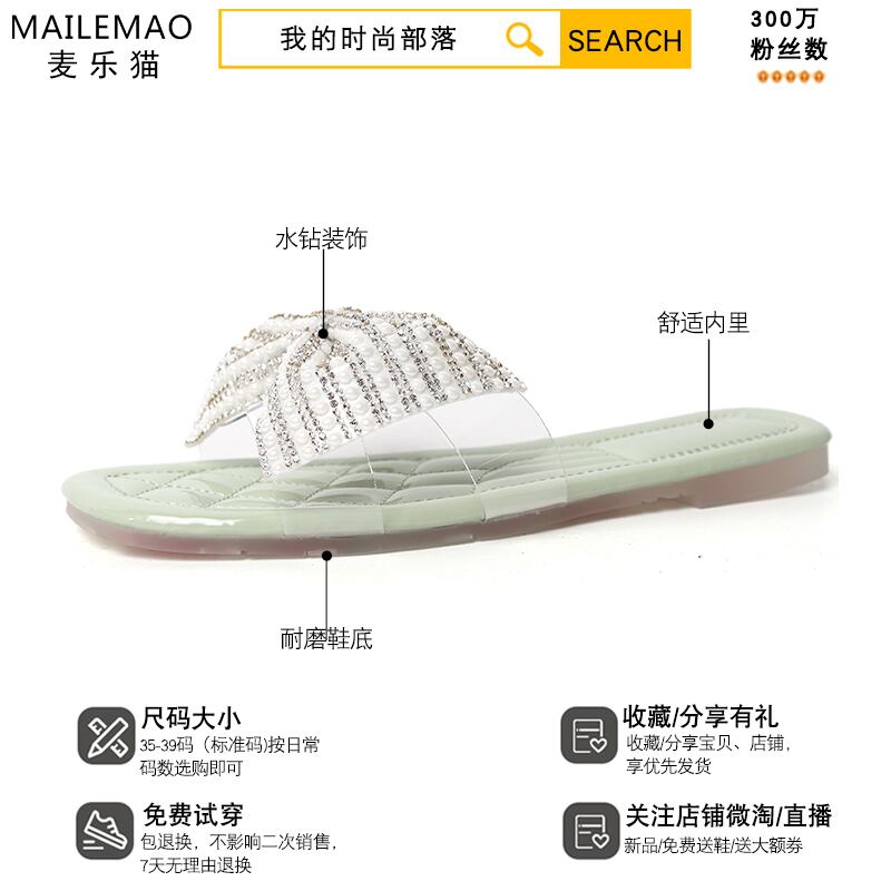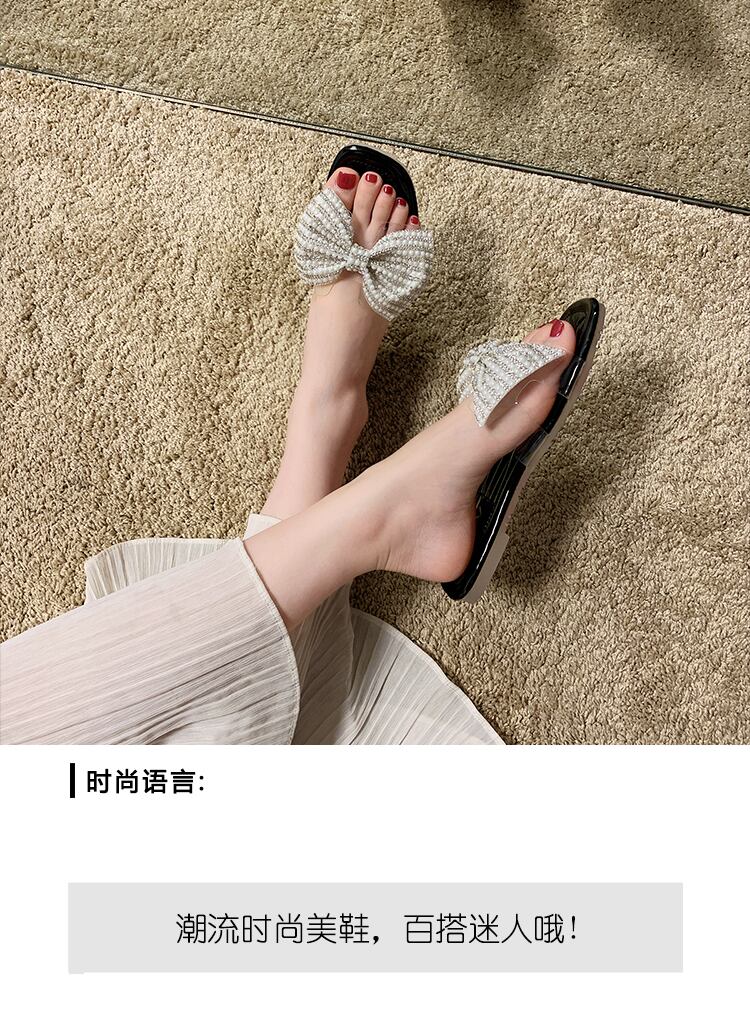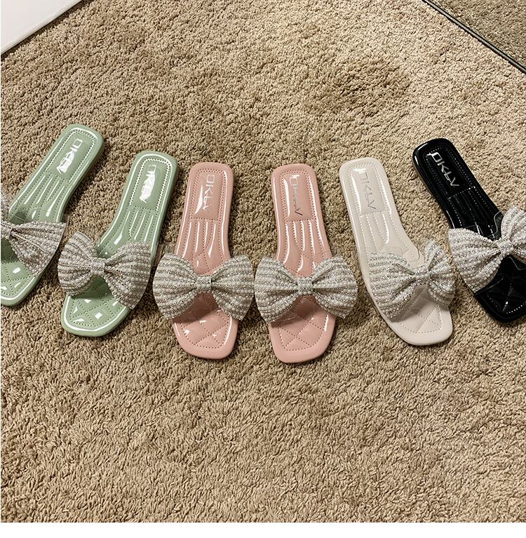 スリッパの女性は、弓の野生の野生のフラットネット赤い透明なラインストーンの単語のサンダルの2020年夏の新バージョンを着ます 部族の婦人靴4336767