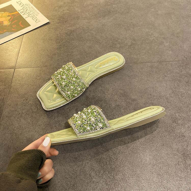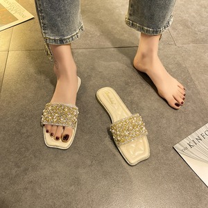 ネットレッドスリッパ女性は、2020年の新しいバージョンの野生のファッションソフトボトムスーパーファイヤーサマーパールフラットボトムドラッグを着用します 部族の婦人靴1215799