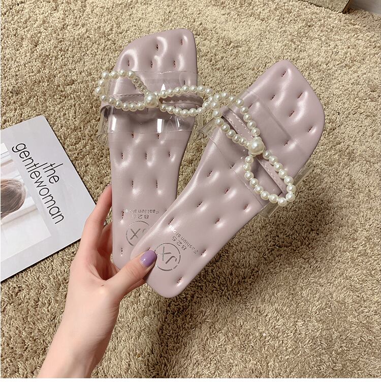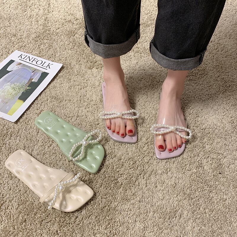 スリッパ女性は2020新しいファッション小さな新鮮で野生のパール妖精スタイルソフトボトムオープンつま先フリップフロップを着用します。 部族の婦人靴2044810